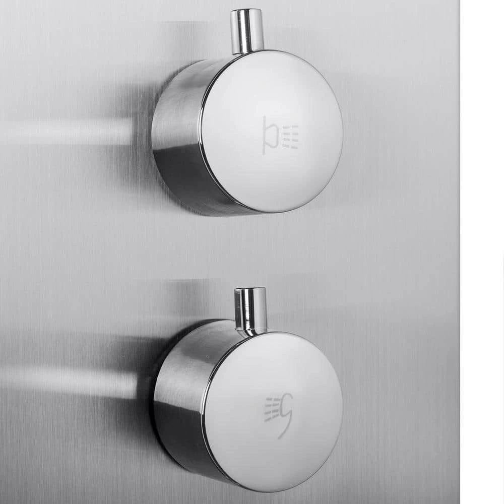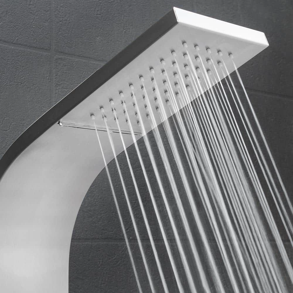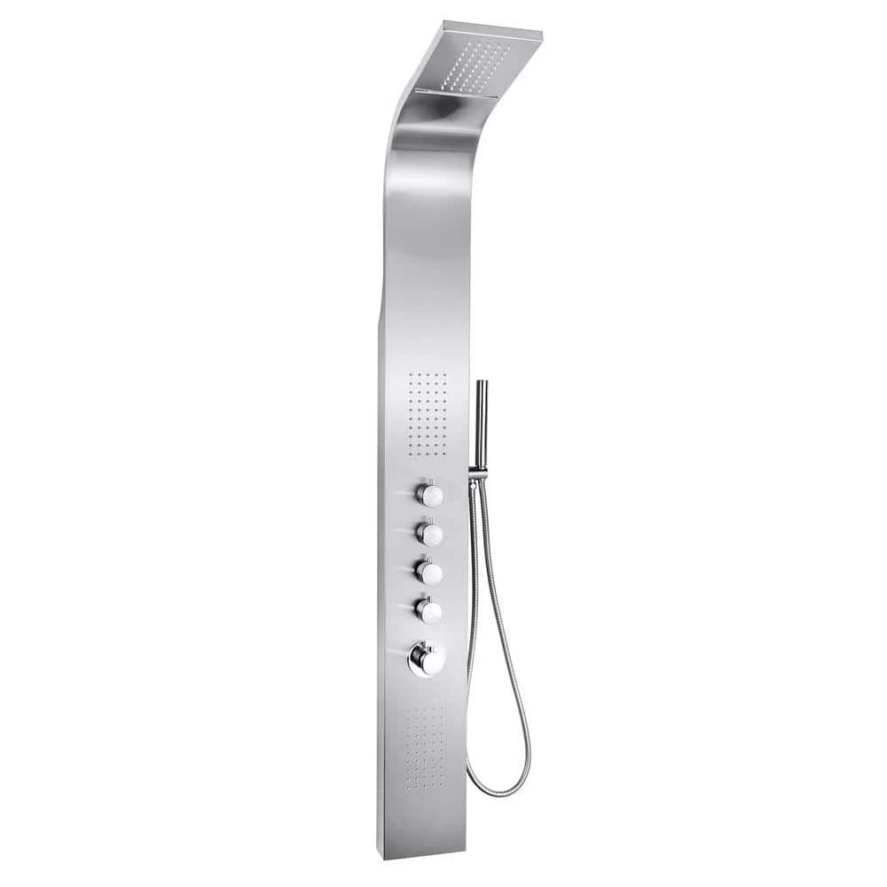 Discover a new kind of clean underneath the AKDY 63 in. SP0107 Shower Panel. Built from stainless steel, this shower panel is a durable unit, providing a thorough and unique shower each and every time. With 100 nozzles dedicated to providing ample body sprays and 50 nozzles that provide a cascading rainfall shower experience, this shower panel is the star of the show. A waterfall style nozzle is added to the rainfall, offering just another way to get clean. With simultaneous functions and thermostatic controls this shower panel can be operated with all features on, without the fear of scalds or chilly water. A handheld shower wand controls the flow and spray and delivers it where it is needed. Using 1/2 in. standard sizing, this model is perfect and easy to use. Furthermore, this shower panel is covered by a 1-Year Parts Warranty.