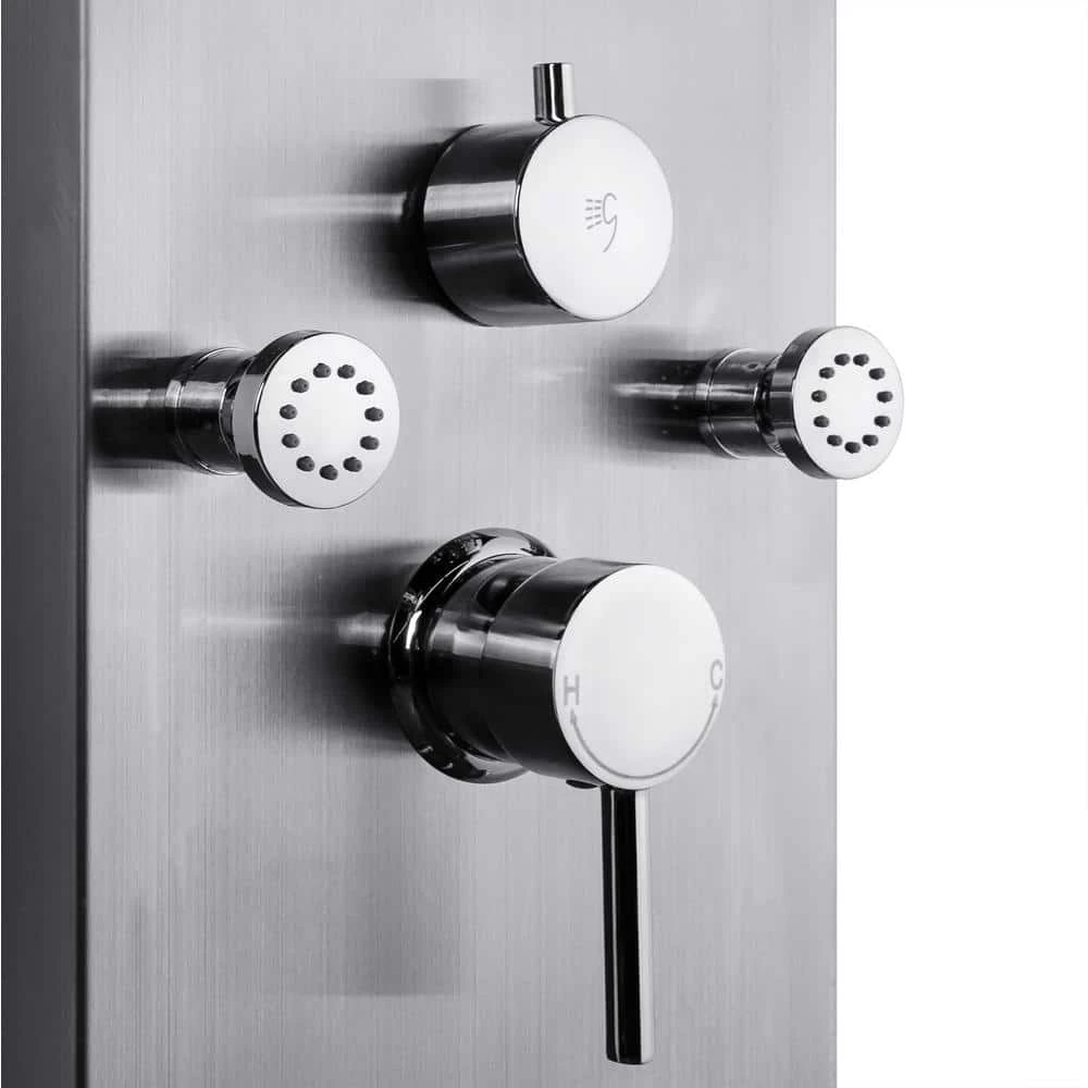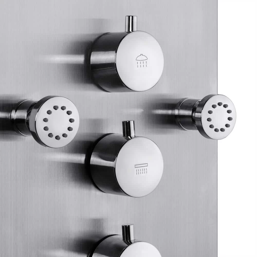 Utilitarian by design and ultra-durable, our large 65 in. stainless steel shower is fit for a king. 8-high-powered body spray jets provide a relaxing and soothing shower with the added convenience of being angle adjustable. A wide overhead shower does double duty as a rainfall and waterfall shower for the best of both worlds. A matching hand shower with extra-long hose ensure you get to all the hard to reach places with ease.