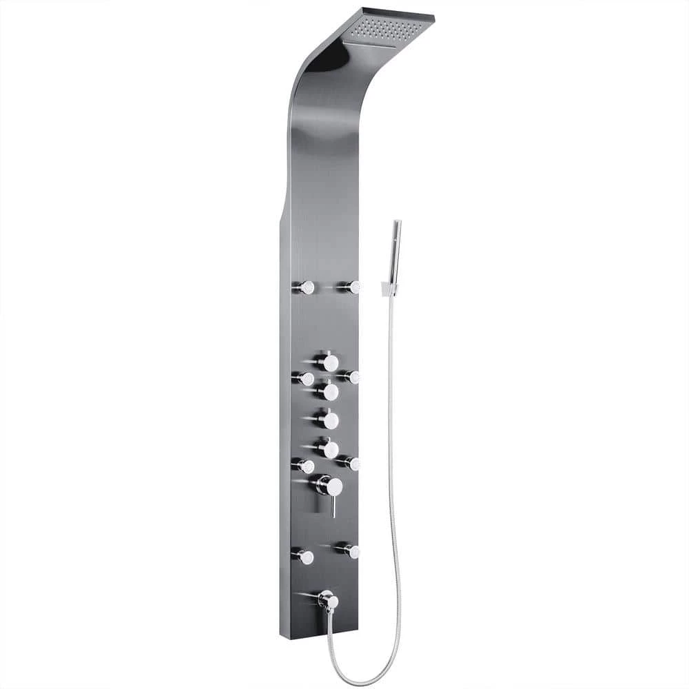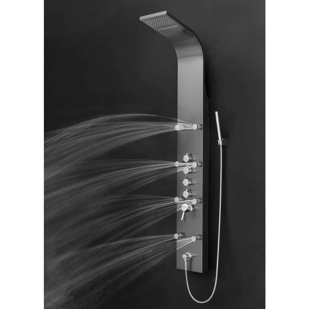 No matter if you are searching for a way of including more relaxation in your everyday life or you just want a top-quality accessory for your bathroom, the AKDY shower panel is the ultimate bathroom system that will provide with hydro massage and a whole lot of other functions. The reason to purchase this shower system is because it’s the shower system you deserve: two shower heads, multiple massage jets, and a waterfall function, all for your comfort during the daily shower. Made from high-end brushed stainless steel with a space gray color and providing 8 different adjustable jet nozzles, as well as 2 shower head functions, this shower is an oasis of relaxation for anyone.