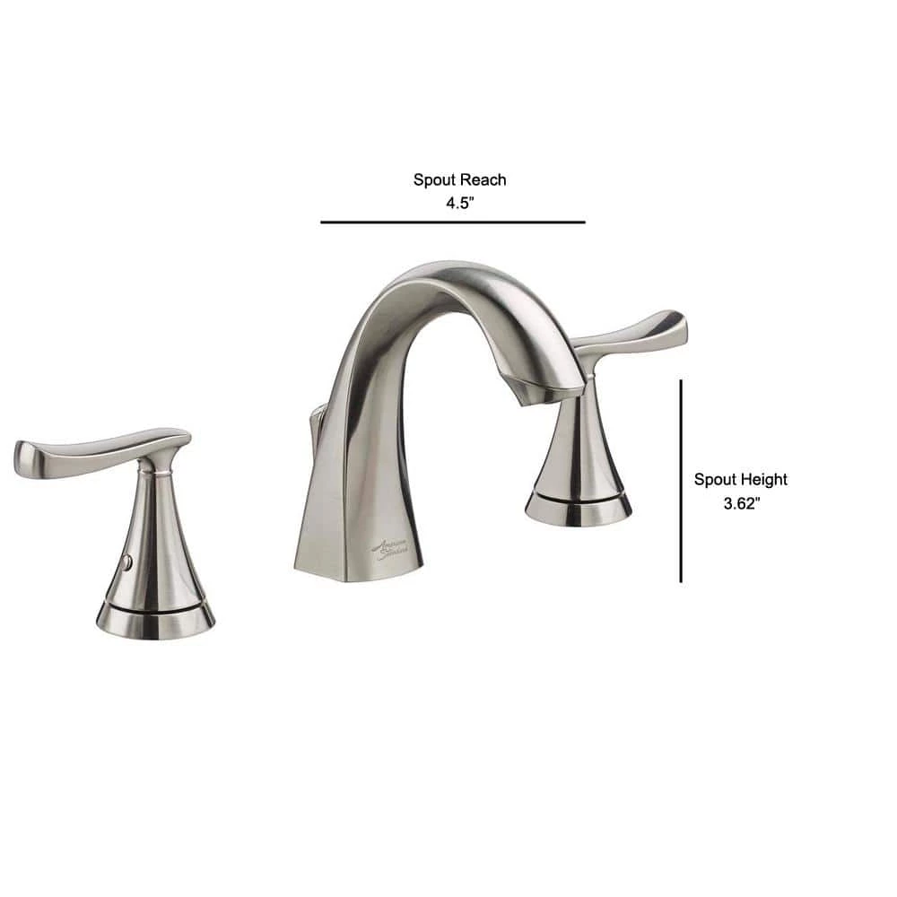 Gentle curves and sweeping lines drive the design inspiration behind the Chatfield Mid-Arc 2-Handle Widespread Bathroom Faucet from American Standard. Durable metal lever handles allow for precise volume and temperature control, and a 1.2 GPM flow rate is WaterSense certified to be easier on the environment. Faucet installation has never been easier, too, thanks to the exclusive Speed Connect system. Pre-assembled handles drop in from the top of the sink, and Speed Connect hoses easily snap together for a watertight connection. A variety of finishes and a coordinating tub and shower are also available separately to complete your bathroom upgrade.