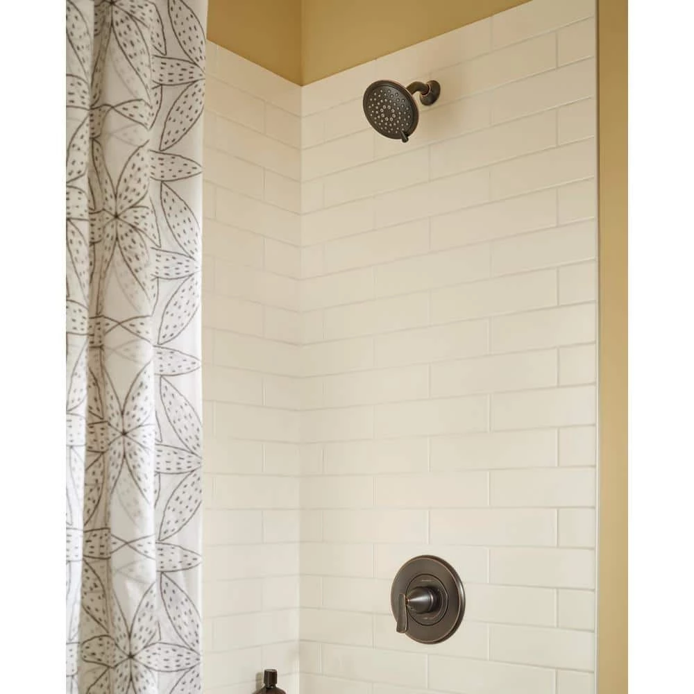 - Large, 3-function showerhead offers conventional, massage and combo sprays