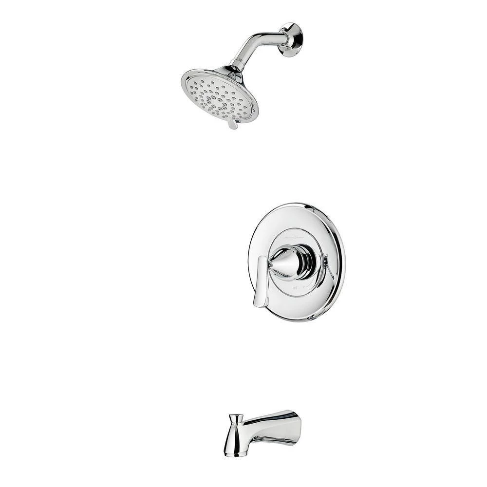 Effortless elegance and leading-edge style combine to make American Standard’s Chatfield Tub and Shower Faucet the perfect choice for your bath. Striking in its design simplicity, the subtle and sweeping curves are inspired by nature itself. A single lever handle allows you to fine-tune temperature, while the 3-function showerhead is WaterSense approved and offers a spa-like experience. An anti-scald valve also protects your family from unexpected changes in water temperature and pressure. Co-ordinate the look with a matching Chatfield center set or widespread faucet to create a bathroom you’ll love.