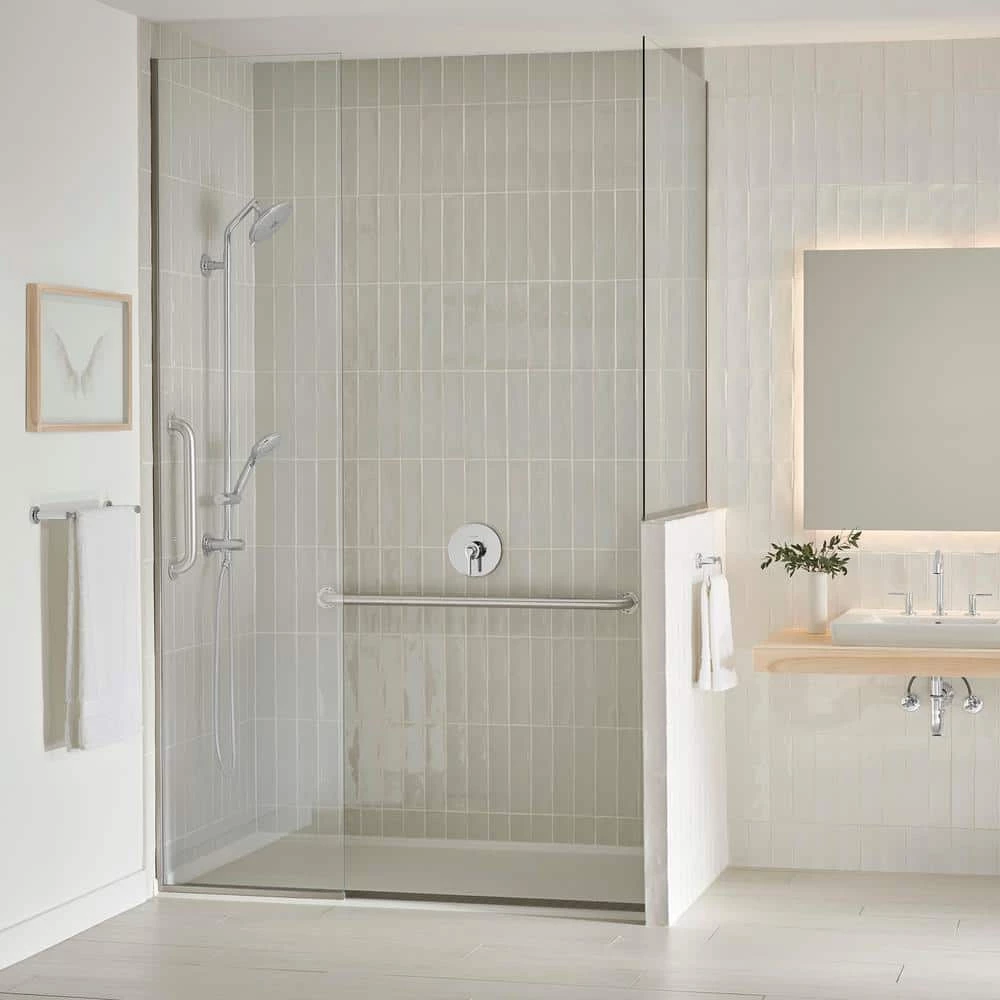 - Easy installation for retrofit, renovation or new construction eliminates drilling or damage to tile