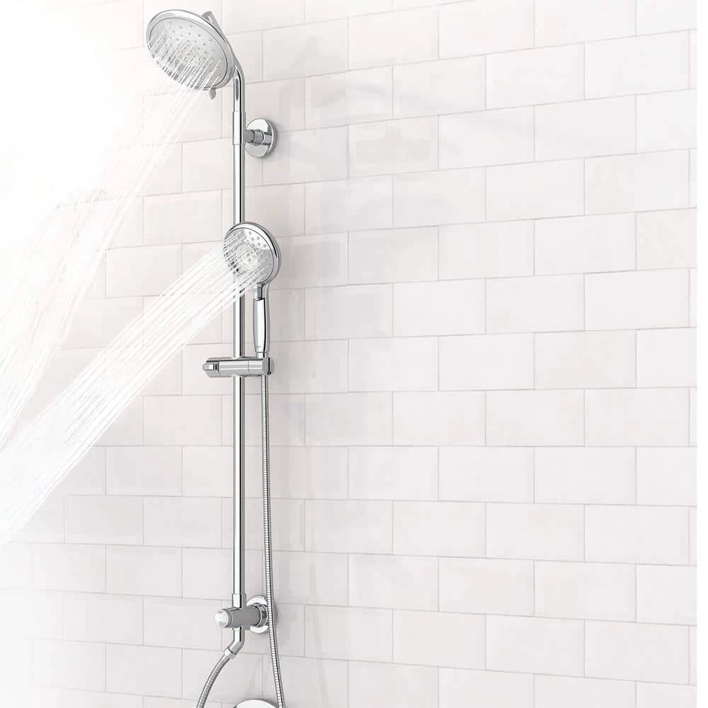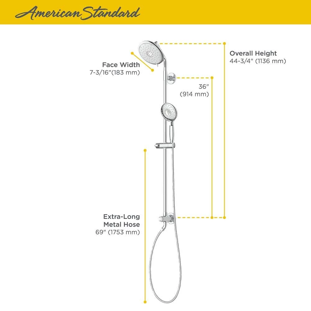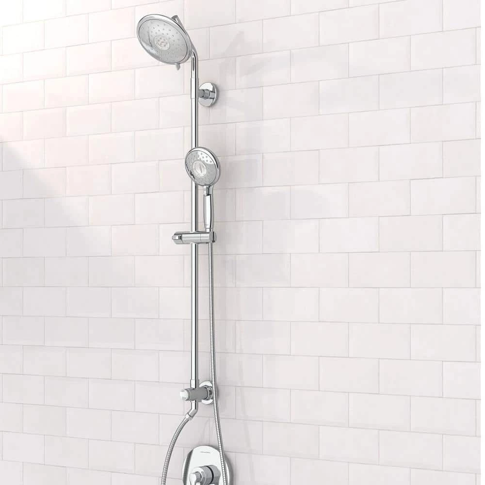 The 3-in-1 versatility of the Spectra Versa Shower System from American Standard allows everyone in the family to enjoy a truly personalized shower. Indulge in four soothing spray functions from 7 showerhead and hand shower, individually or simultaneously, easily switching between both with the push-button diverter. Slide bar features an Easy Glide bracket to adjust the height of the hand shower. Designed for hassle-free installation using existing plumbing, Spectra Versa eliminates the need to drill or damage tile, transforming an ordinary shower in an extraordinary spa experience in just 30 minutes.