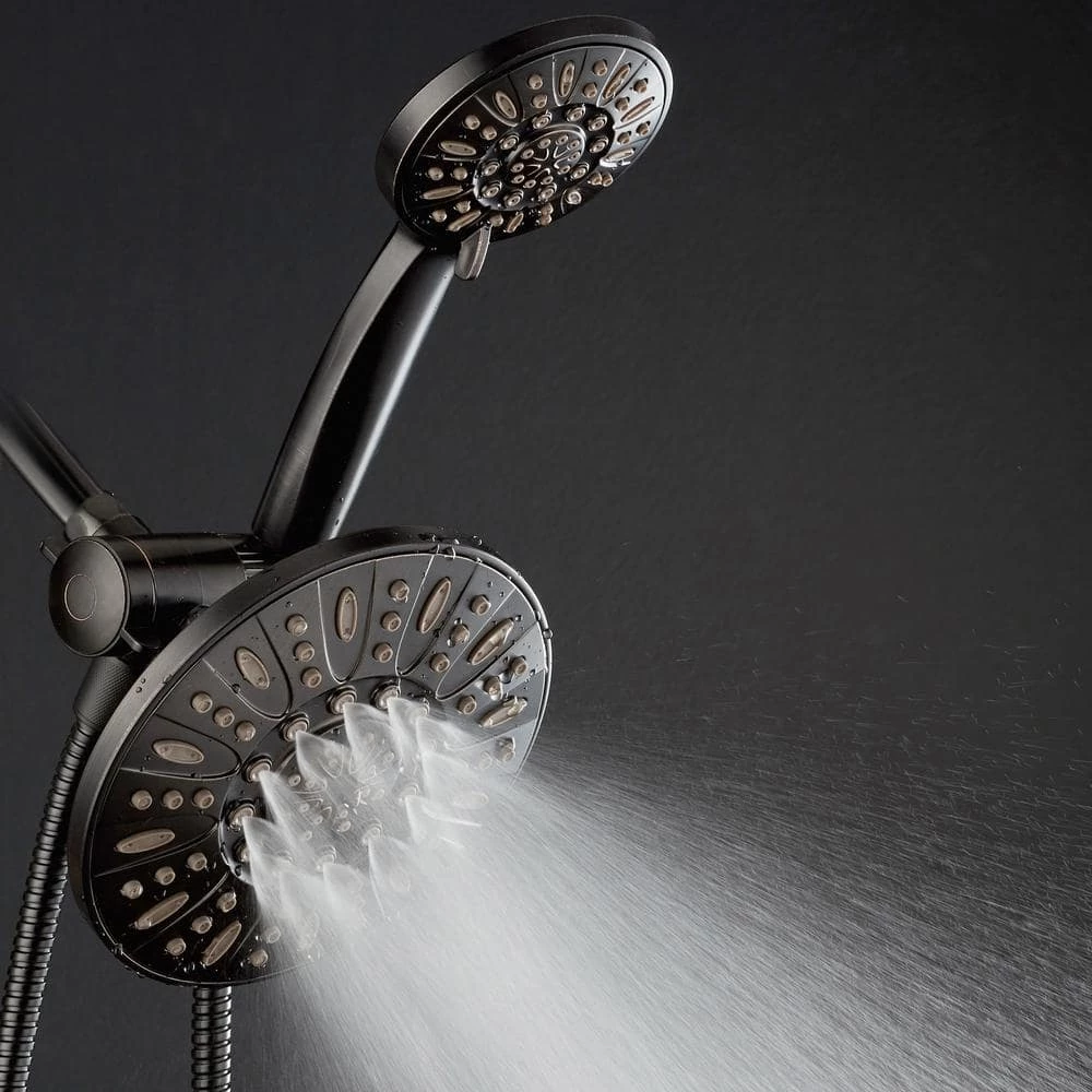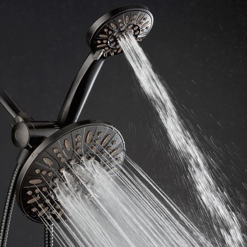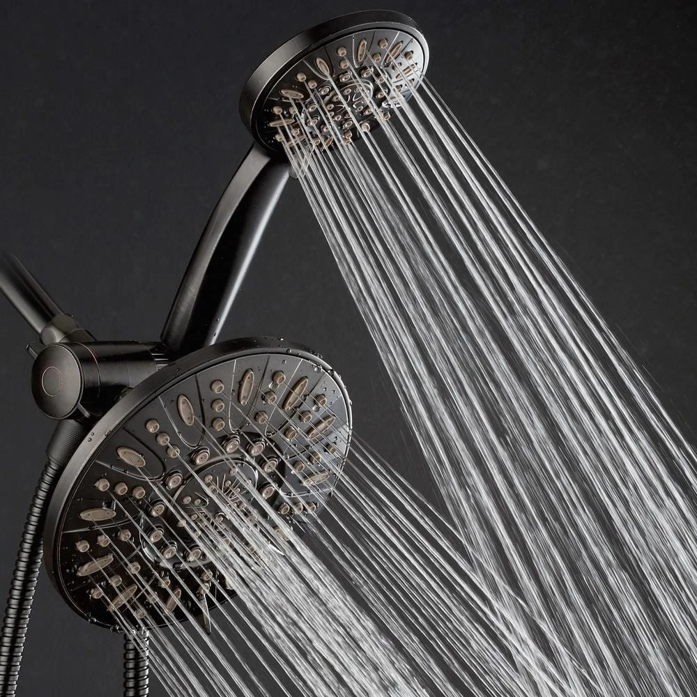This ultra-luxury high-pressure shower combo from a top-selling American brand offers the ultimate in spa pampering and convenience. Enjoy a giant 6-setting 7 in. rainfall shower head and matching 6-setting hand shower separately or together for your best shower ever. This luxury showerhead Includes convenient water-saving Pause mode, patented 3-way water diverter and extra-long 72 in. hose for added reach and mobility. A high end Oil Rubbed Bronze finish highlights this fabulous shower system.