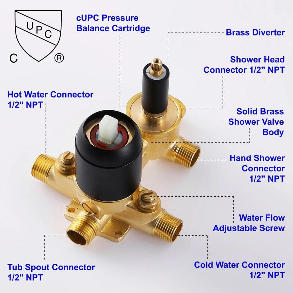 - Pressure balance valve’s cartridge monitor water pressure balance, helping to protect you from being scalded by sudden changes in hot or cold water pressure