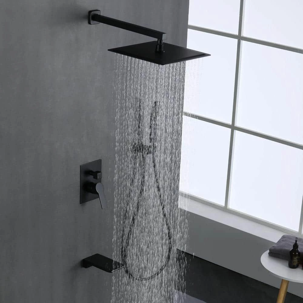 Charming and simplistic 10 in. Square Bathroom Shower Combo Set Faucet is a brilliant accessory for your bathroom. Aurora Decor always uses the best material to bring the best guarantee and quality to our customers. High air pressure technology inject the air into rain Shower head to mix water with air offer more water pressure and giving you a pleasant shower.