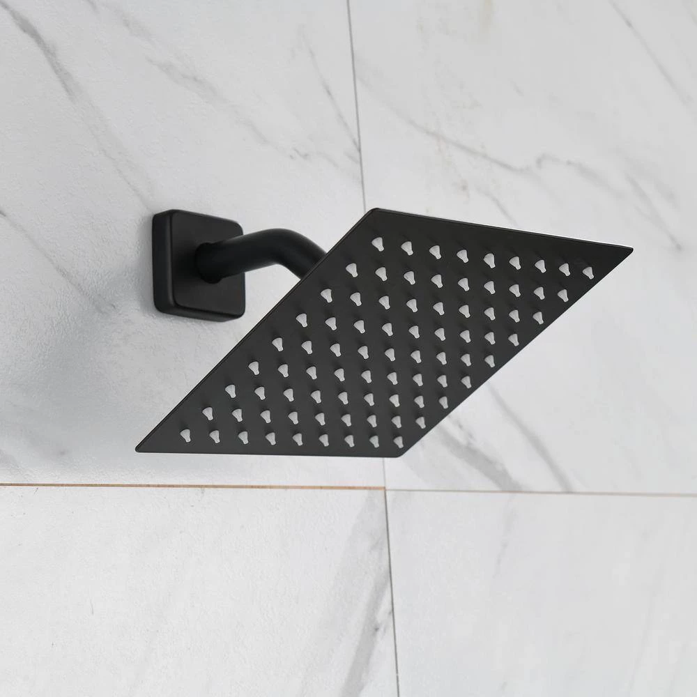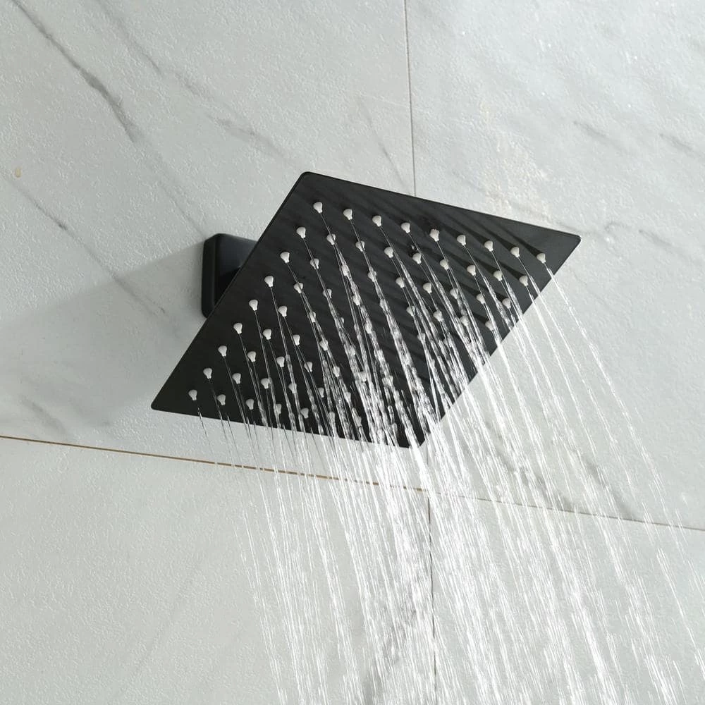 With geometric forms, squared corners and straight lines, this matte black shower faucet with rough-in valve has a modern design and an ample water flow of up to 1.8. per minute. And it releases a steady stream of water that rains over your body. It is perfect for any bathroom. Shower head is made of brass and stainless steel for a lone time use. The shower head can be adjusted 360°. The single level handle is easy to control. It can suit any bathroom.