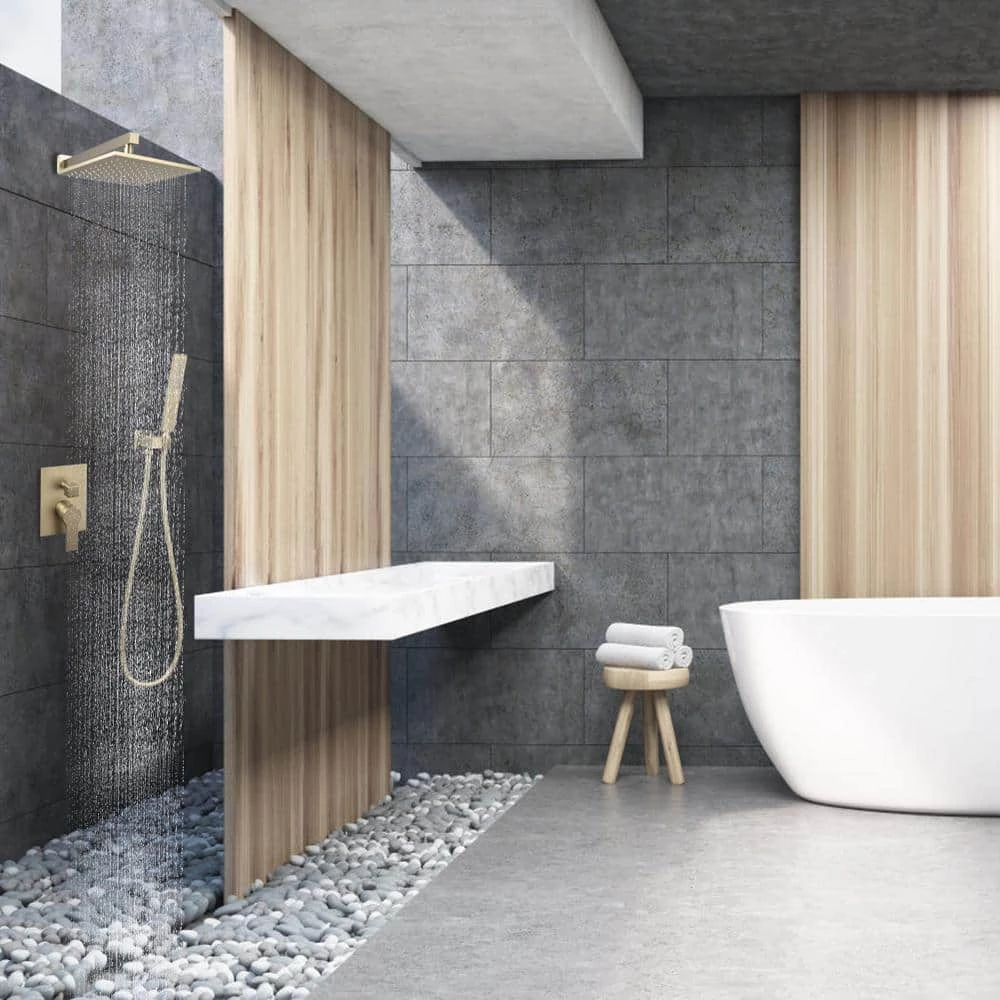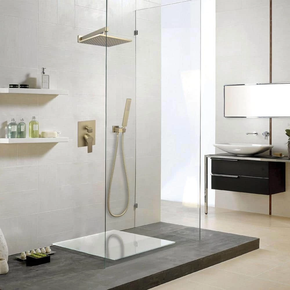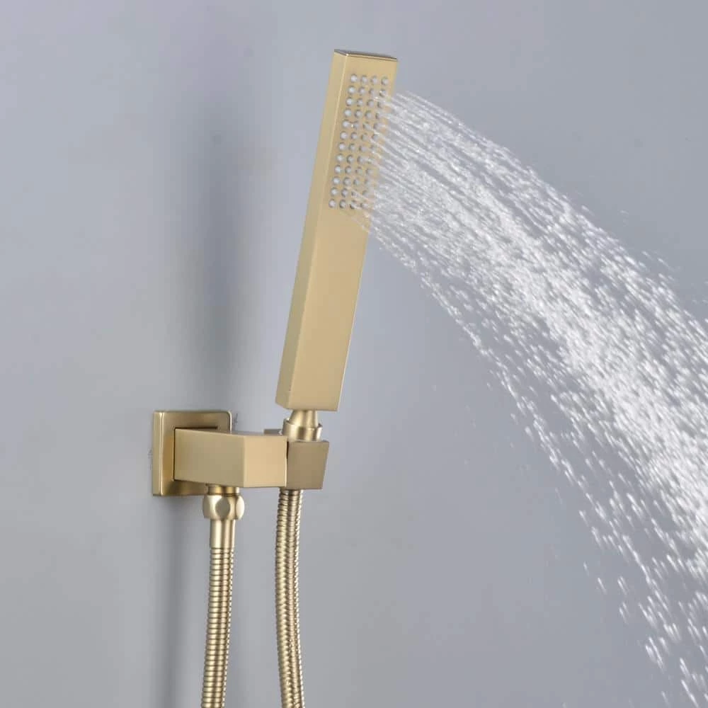 - 10 inches square rain shower head (Brass), handheld shower head (Brass), 15.7 inches shower arm (Brass), 1.5M shower hose (SUS304 Stainless steel), shower holder(Brass), shower mixer valve body (Brass) and other necessary installation parts