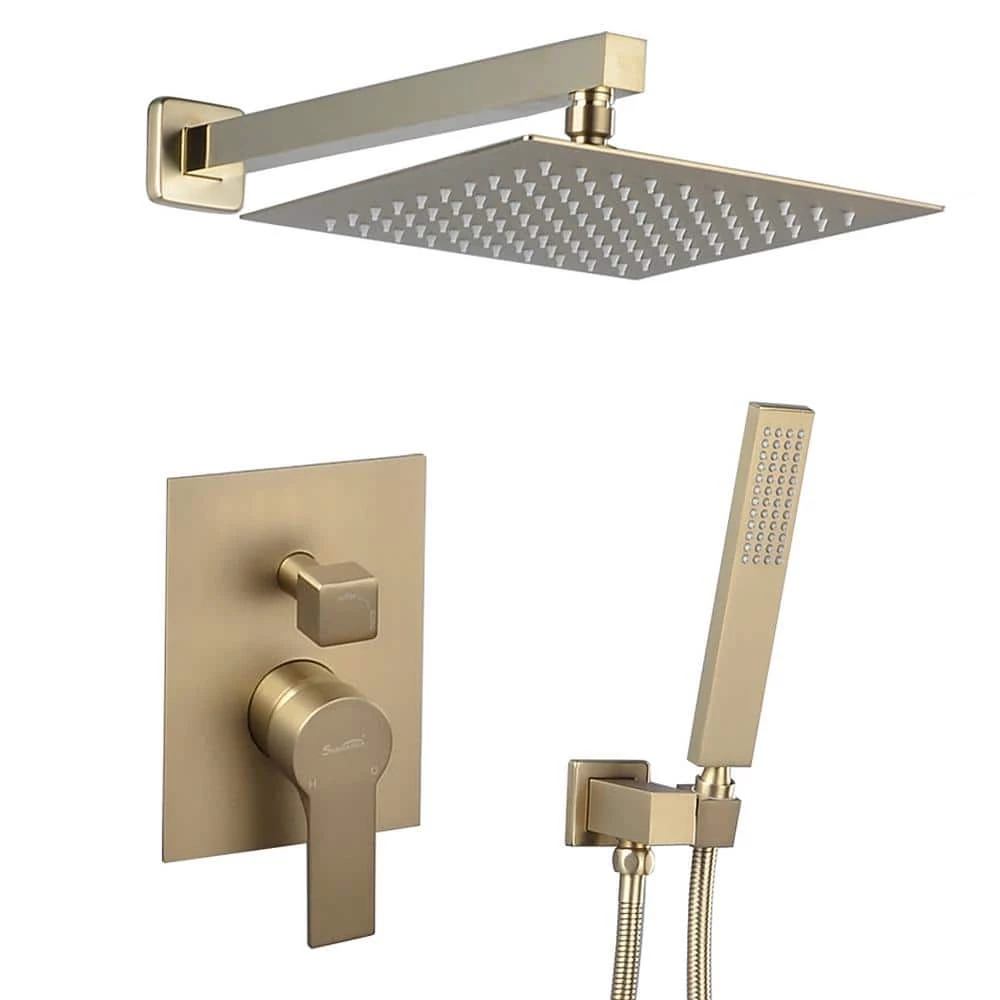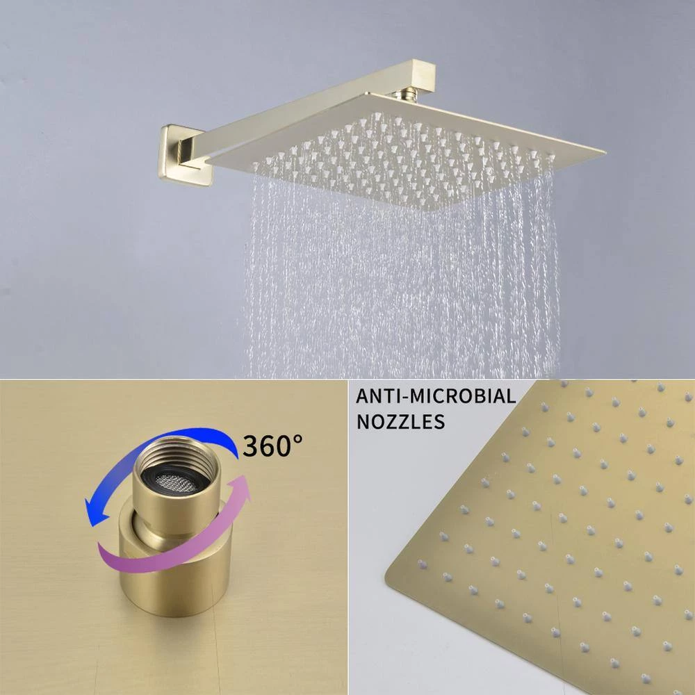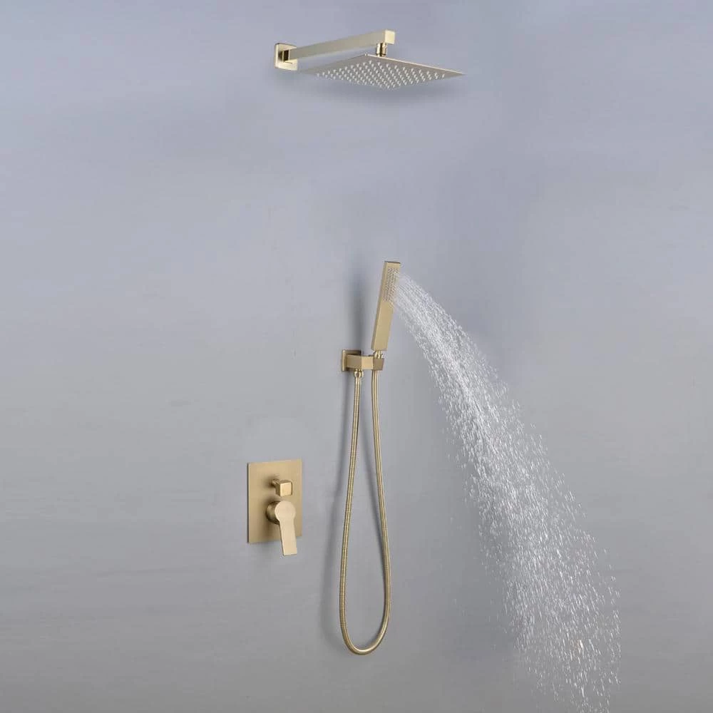 - 10 inches square rain shower head (Brass), handheld shower head (Brass), 1.5M shower hose (SUS304 Stainless steel), shower holder(Brass), shower mixer valve body (Brass) and other necessary installation parts