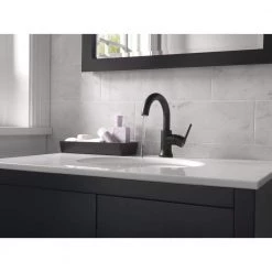 Delta Trinsic Single Hole Single-Handle Bathroom Faucet with Metal Drain Assembly in Matte Black