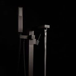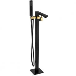 AKDY 1-Handle Freestanding Floor Mount Tub Faucet Bathtub Filler with Hand Shower in Matte Black
