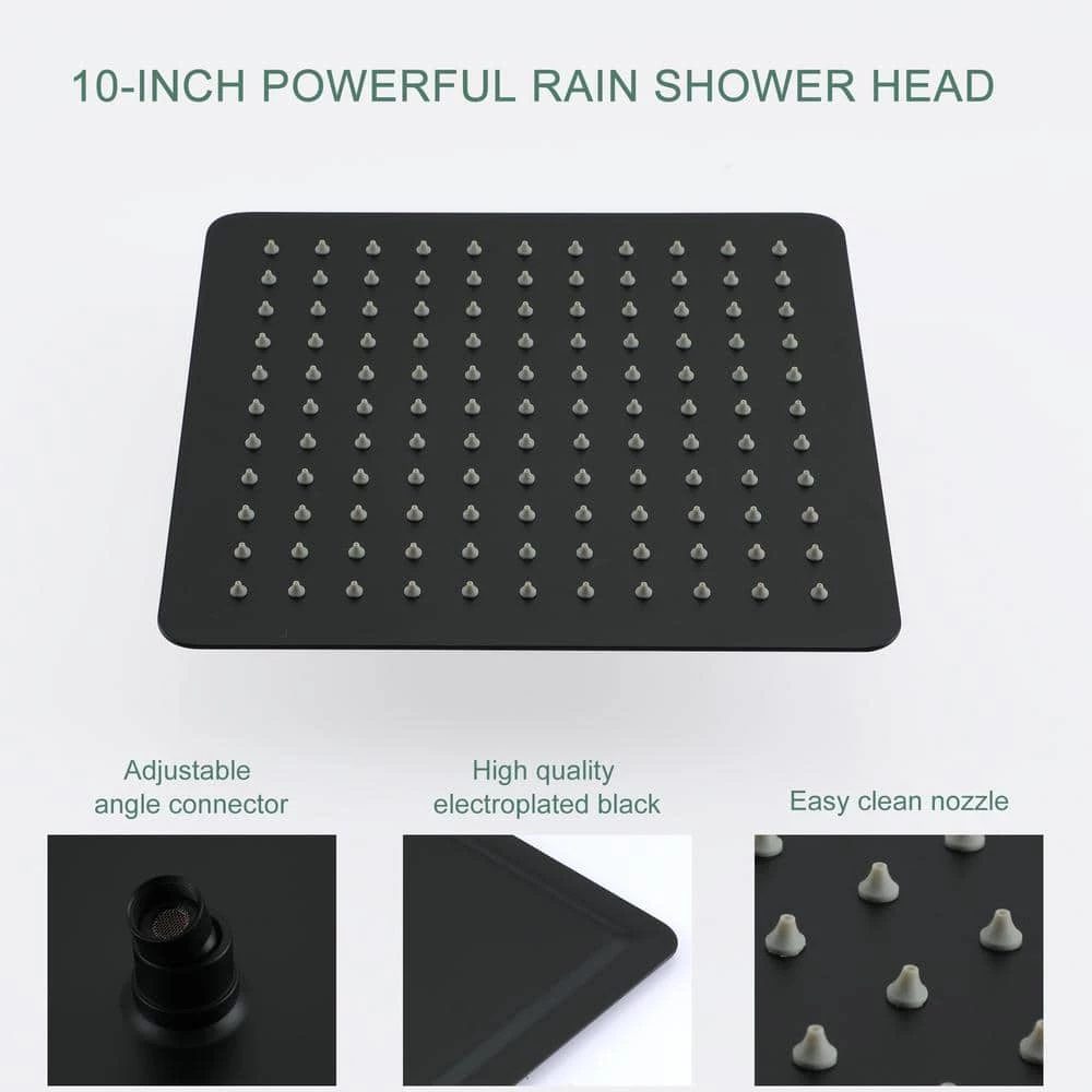 - 10 in. fixed shower head is made of stainless steel 304, which prevents rusting, water comes out evenly and softly, giving you the ultimate experience