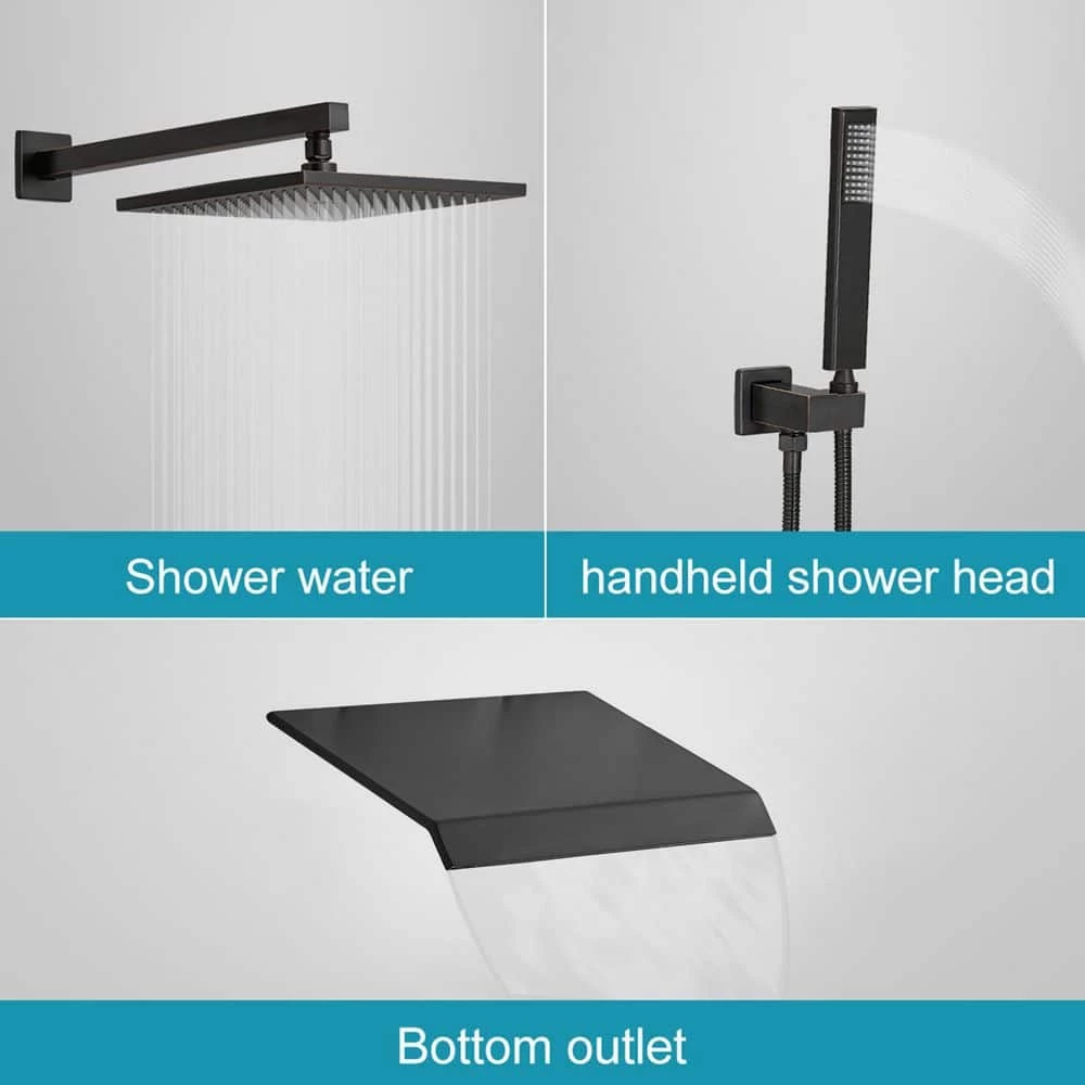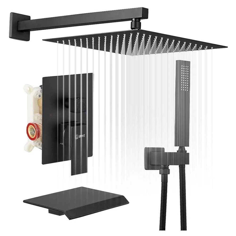 Charming and simplistic-BWE 10 Inch Square Bathroom Shower Combo Set Faucet is a brilliant accessory for your bathroom.BWE always uses the best material to bring the best guarantee and quality to our customers.High air pressure technology inject the air into rain Shower head to mix water with air offer more water pressure and giving you a pleasant shower.