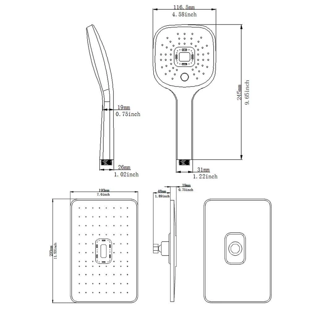 - Air pressure technology: inject the air into rain shower head to mix water with air, and the water pressure up to 2.5 GPM instantly, giving you a pleasant shower with self-clean nozzle, easy to clean and maintain