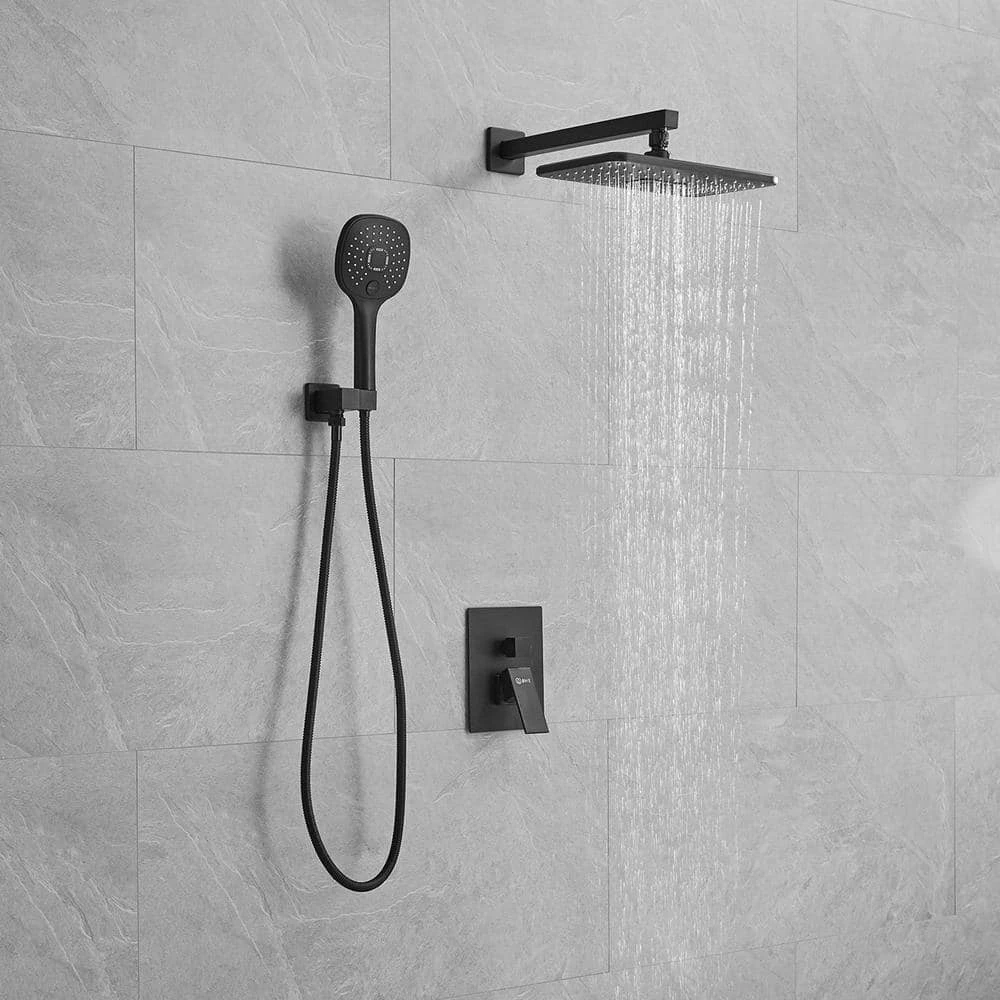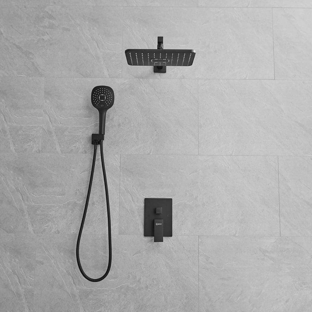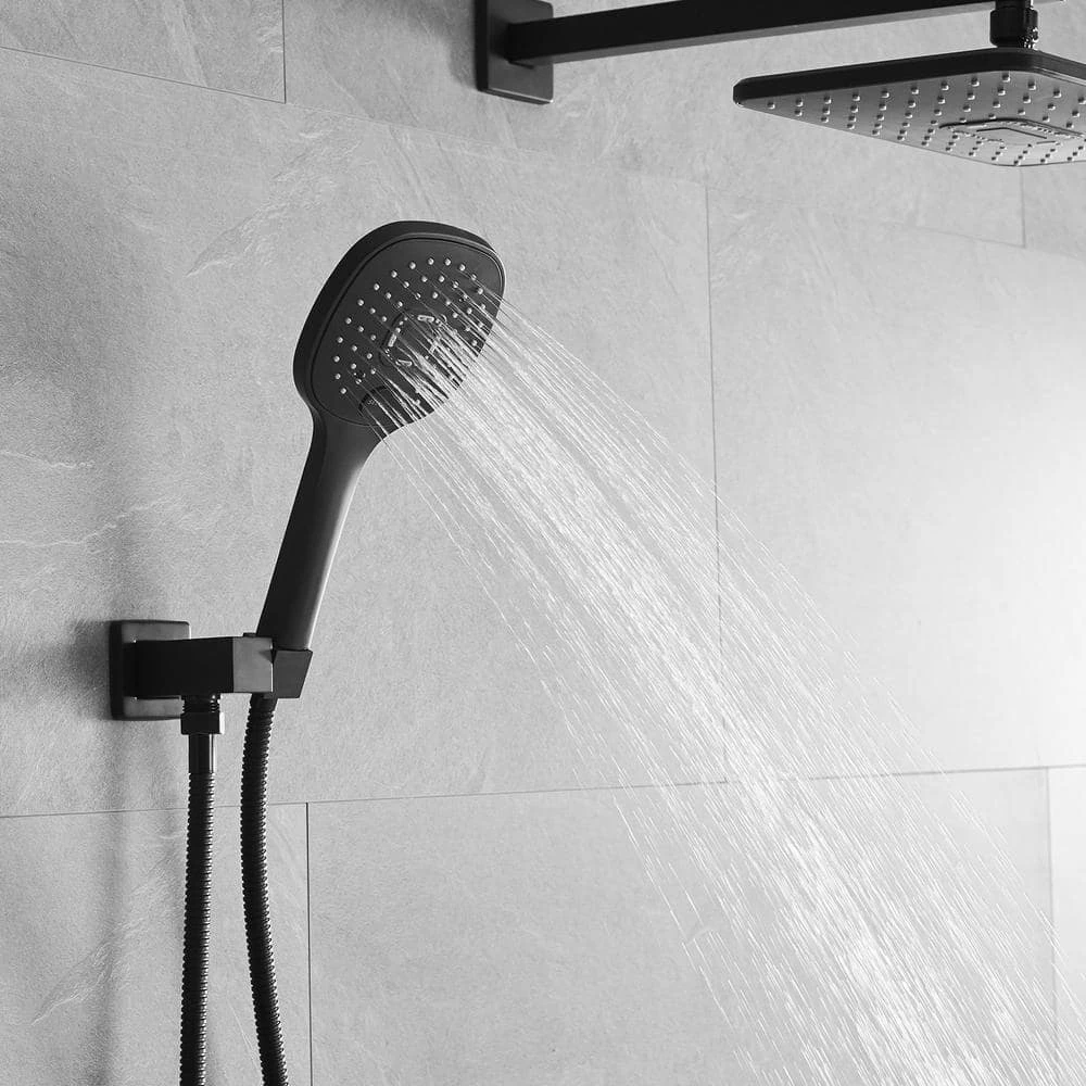 Charming and simplistic BWE 10 in. Square Bathroom Shower Combo Set Faucet is a brilliant accessory for your bathroom. BWE always uses the best material to bring the best guarantee and quality to our customers. High air pressure technology inject the air into rain Shower head to mix water with air offer more water pressure and giving you a pleasant shower.