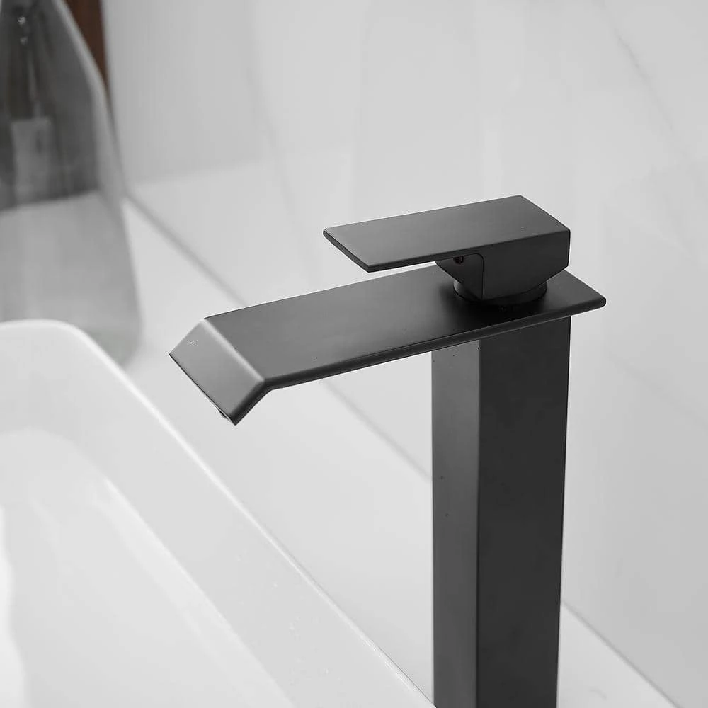 - Waterfall Spout : The bathroom faucet provides a clear and steady laminar stream, that provides a beautiful water presentation. Single lever design for effortless flow and temperature control
