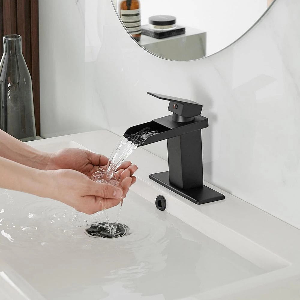 Charming and simplistic-BWE Single Handle One-Hole Waterfall Bathroom Faucet is a brilliant accessory for your bathroom.BWE always uses the best material to bring the best guarantee and quality to our customers.The faucet’s low lead solid brass fabricated body ensures the service life of faucet and best water experience for customers.