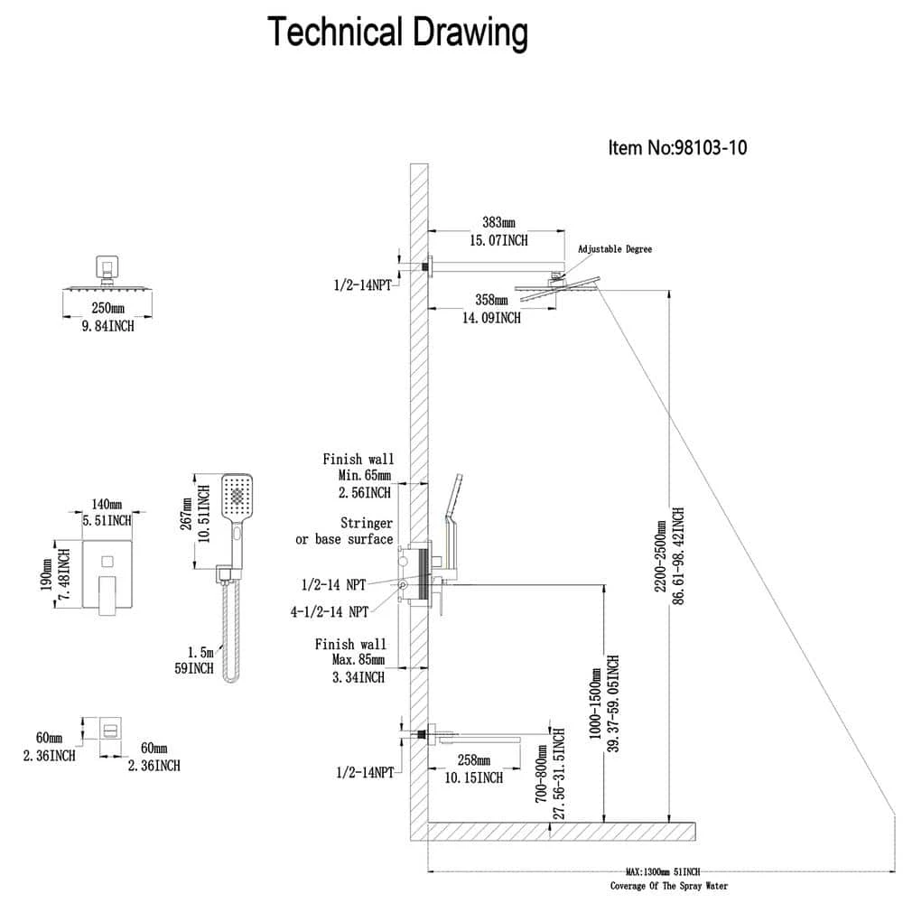 - Easy Installation: All threads are G 1/2 NPT. Please DIY to install the shower step by step as shown on the attached instruction manual. Also, to ensure the safer and faster installation process, it’s highly recommended to hire the plumber or contractor to install the shower system.