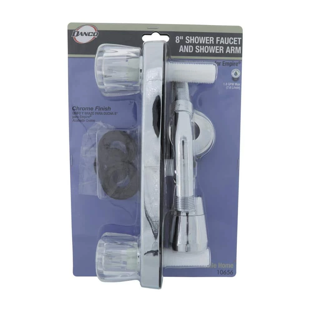 Designed for use in mobile homes/RV’s, this DANCO shower faucet fits your space perfectly while adding style to your bathroom. The shiny chrome finish refreshes your shower area and the faucet’s design is clean-looking and classic. The 2 knob handles allow you to adjust your shower temperature easily until you find the right setting. The single-function showerhead is a universal replacement for mobile home/RV showerheads, making it a convenient choice when it’s time for a change. Let this compact faucet enhance your bathroom with an attractive vintage look with a solid performance.
