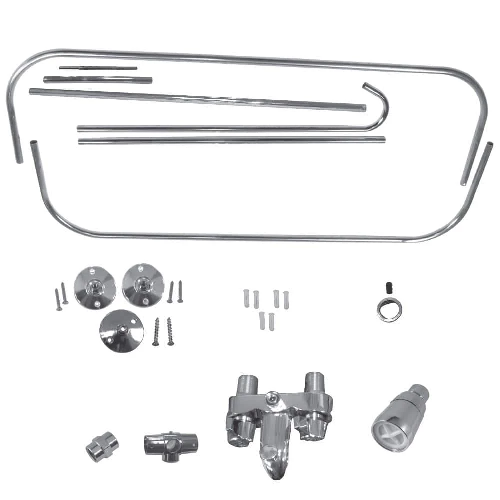 Convert your claw foot tub to a shower/tub combo with this quality, stylish conversion kit from Danco. This is an easy Do-It-Yourself project. The kit features a durable brass construction and includes all of the necessary parts, including the support bracket, flange for support rod and support tubes, shower rod holder pipe and pipe coupling, to complete the transition. Also included in the kit are: ceiling supports, 24 in. X 24 in. shower curtain ring, 3-3/8 in. center faucets and shower head. The shower head has an O.D. of 1-7/8 in. and has a maximum water flow rate of 1.8 GPM. The polished chrome finish will offer your bathroom a bright and handsome appearance.