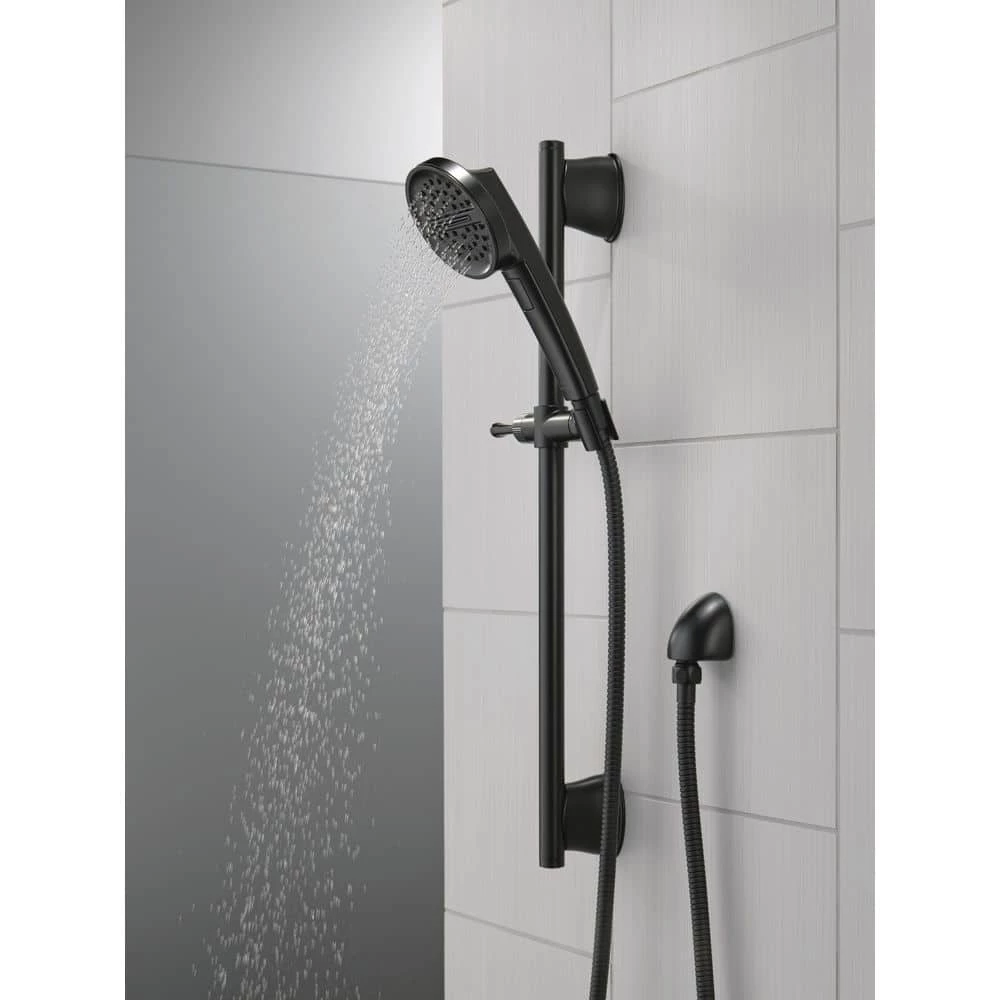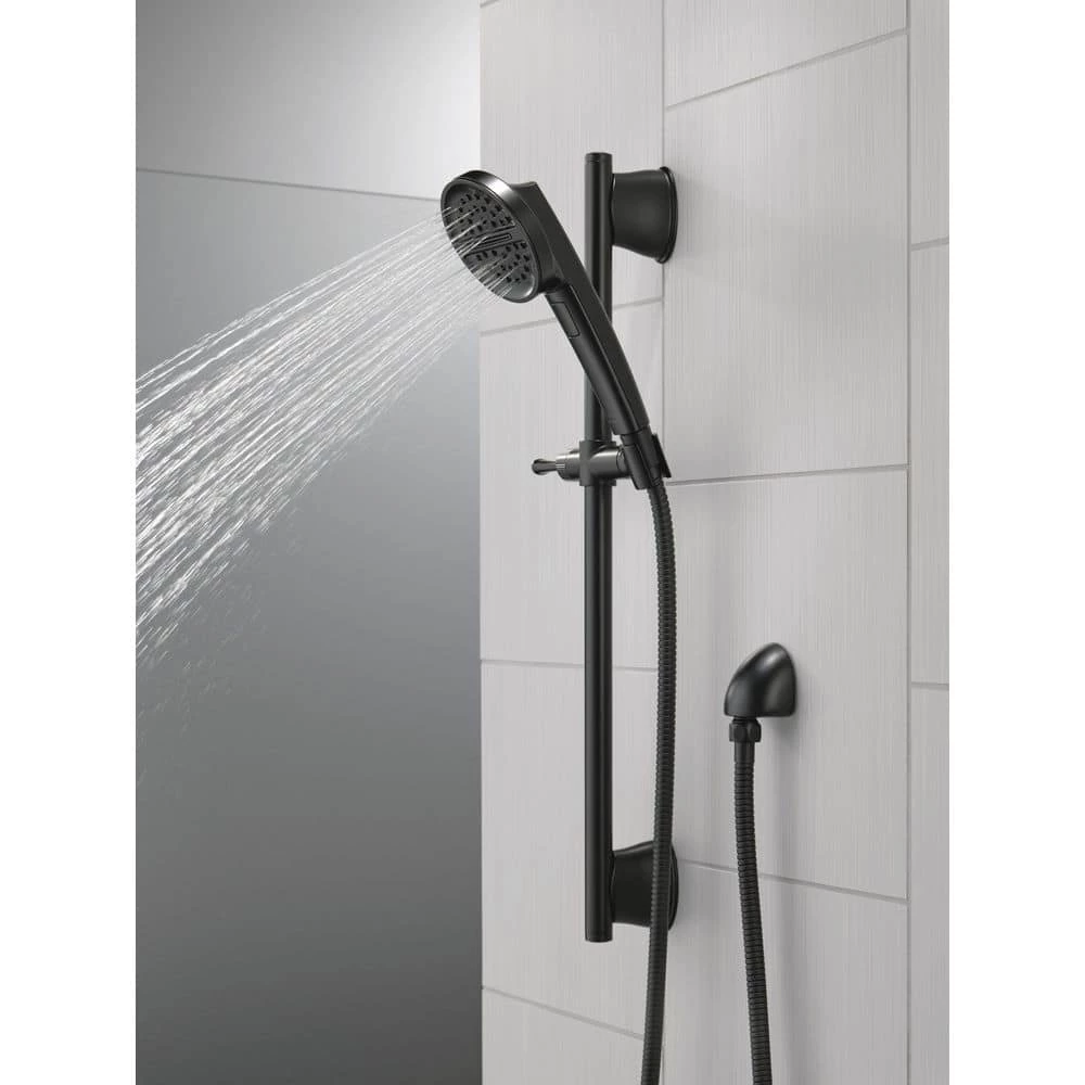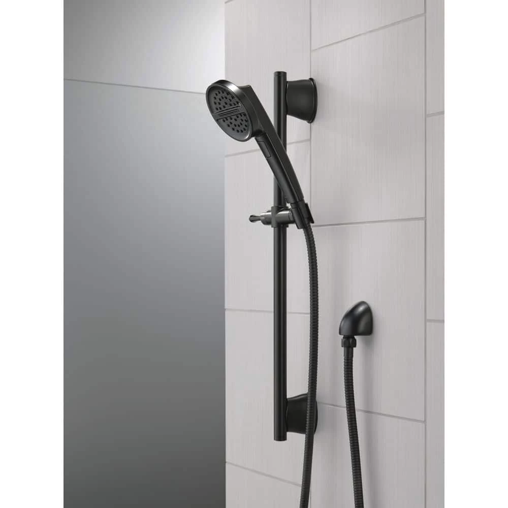 Experience a better shower with the control and flexibility of a Delta hand shower. Great for showering yourself or your loved ones and pets, as well as for keeping your shower and tub clean. This 24 in. slide bar with hand shower features a pivot slide mechanism for easy operation. The hand shower mount can be rotated forward for improved control over the direction of the water coming from your hand shower for an enhanced showering experience. The pause setting gives you ample space for shaving, lathering and other shower tasks, without worrying about overspray or water waste. This spray setting helps you conserve water, so you can worry less about depleting your supply of hot water – and you help the environment too. While other products may gather unsightly mineral build-up over time, Delta soft rubber Touch-Clean spray holes allow any mineral residue to simply be wiped away for an instantly refreshed look – with no need for soaking or the aid of chemical cleaners.