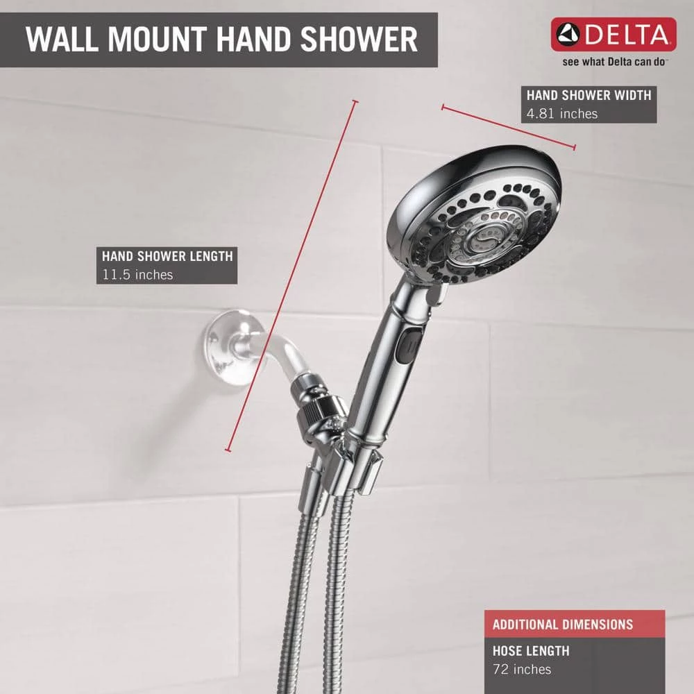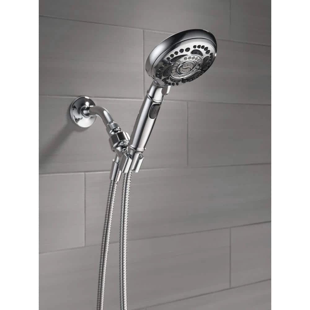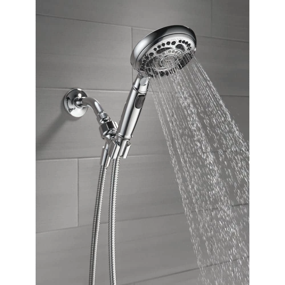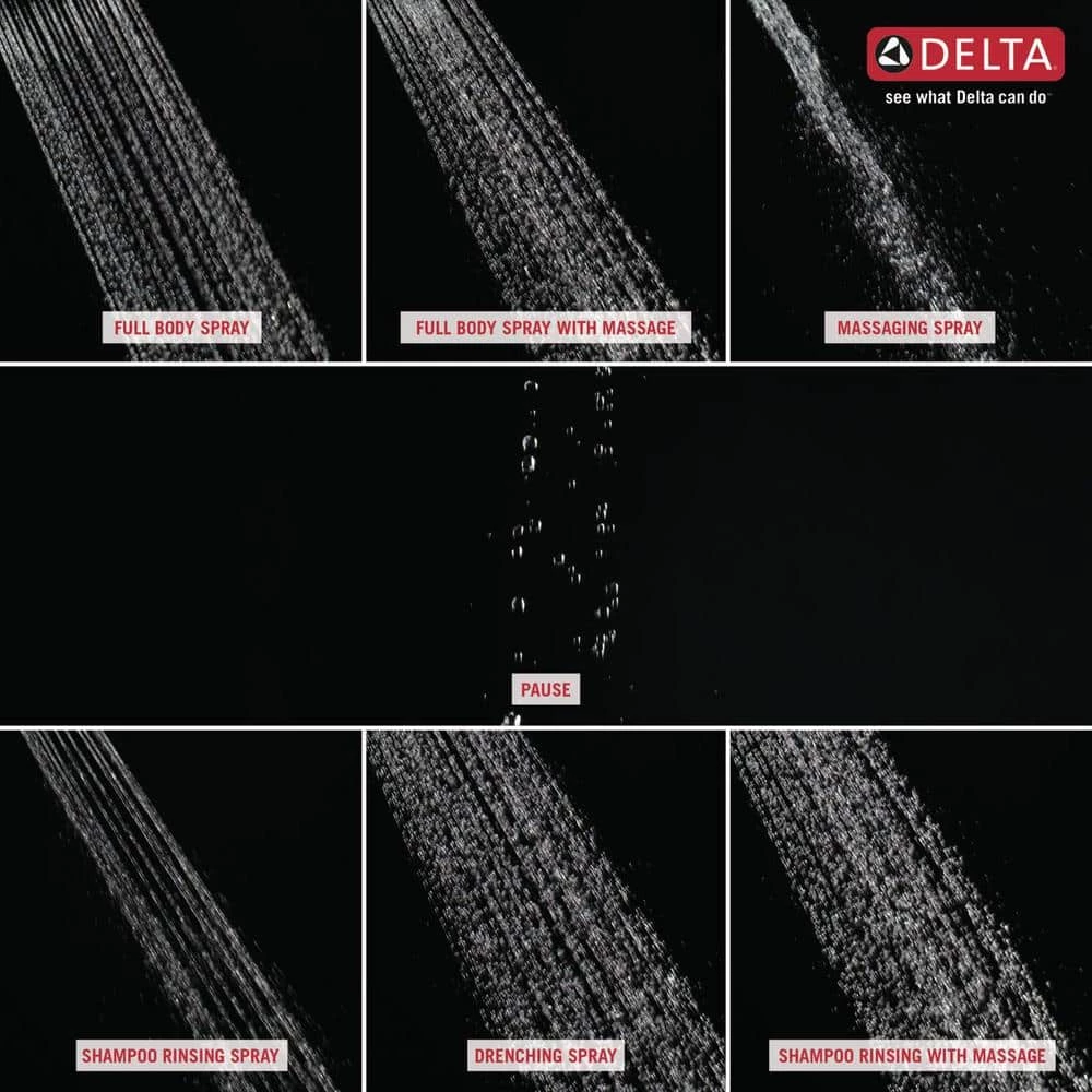Experience a better shower with the control and flexibility of a Delta hand shower. Great for showering yourself or your loved ones and pets, as well as for keeping your shower and tub clean. While other products may gather unsightly mineral build-up over time, Delta soft rubber Touch-Clean spray holes allow any mineral residue to simply be wiped away for an instantly refreshed look – with no need for soaking or the aid of chemical cleaners. The pause setting gives you ample space for shaving, lathering and other shower tasks, then easily restarts the water with the temperature where you left off. This spray setting helps you conserve water, so you can worry less about depleting your supply of hot water – and you help the environment too.