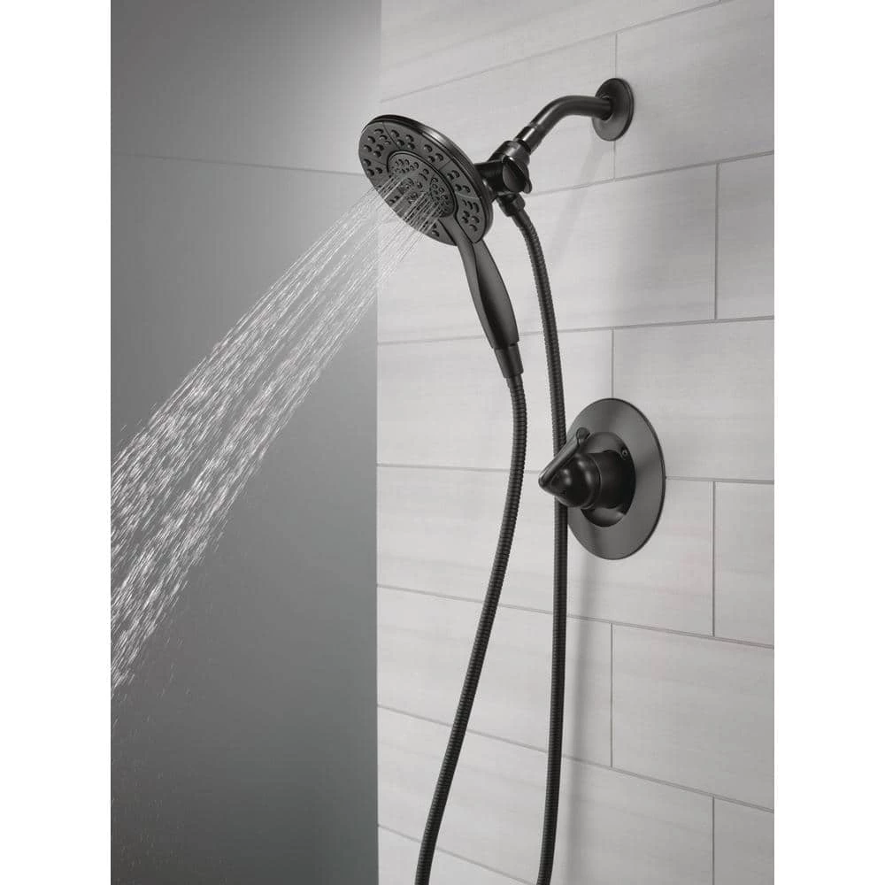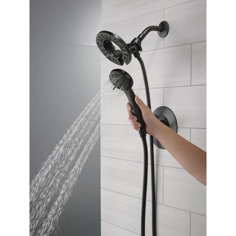 Fluid lines of the Arvo Bath Collection bring a delicate, serene look to the bath. The Delta In2ition 2-in-1 Shower features a detachable hand shower which can be used separately from or simultaneously with the shower head. This integrated dual-functionality gives you maximum flexibility without sacrificing warmth, as you can choose to have water streaming from the shower head only, the hand shower only or both the shower head and hand shower at once. While other products may gather unsightly mineral build-up over time, Delta soft rubber Touch-Clean spray holes allow any mineral residue to simply be wiped away for an instantly refreshed look – with no need for soaking or the aid of chemical cleaners. The pause setting gives you ample space for shaving, lathering and other shower tasks, then easily restarts the water with the temperature where you left off. This spray setting helps you conserve water, so you can worry less about depleting your supply of hot water – and you help the environment too. Delta WaterSense labeled faucets, showers and toilets use at least 20% less water than the industry standard-saving you money without compromising performance.