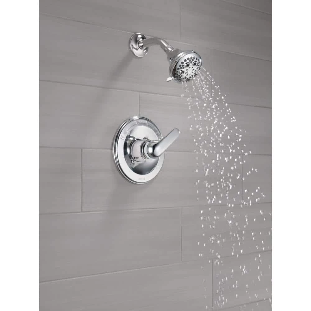 Delta H2Okinetic Showers look different because they are different. Using advanced technology, H2Okinetic showers sculpt water into a unique pattern, giving you 3X the coverage of a standard shower head. The end result is a shower that provides more coverage, more warmth and more intensity for a truly drenching shower experience. So go ahead and indulge, because now you can enjoy the feeling of more water without using more water. While other products may gather unsightly mineral build-up over time, Delta soft rubber Touch-Clean spray holes allow any mineral residue to simply be wiped away for an instantly refreshed look with no need for soaking or the aid of chemical cleaners. The pause setting gives you ample space for shaving, lathering and other shower tasks, then easily restarts the water with the temperature where you left off. This spray setting helps you conserve water, so you can worry less about depleting your supply of hot water and you help the environment too. Delta WaterSense labeled faucets, showers and toilets use at least 20% less water than the industry standard saving you money without compromising performance. Coverage measured in accordance with EPA WaterSense Specification for shower heads, March 4, 2010.