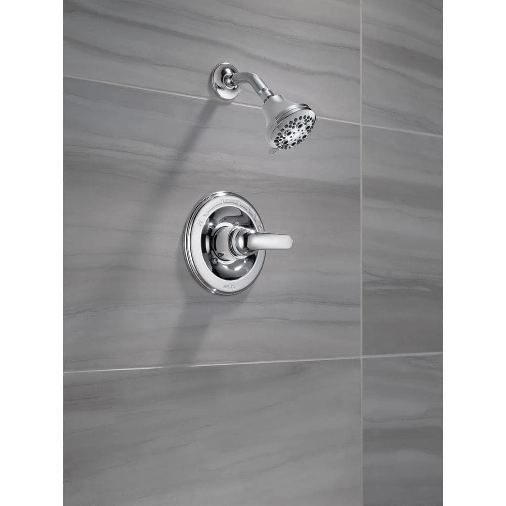 This Classic shower only faucet is as hard working as you are and is built to last. While other products may gather unsightly mineral build-up over time, Delta soft rubber Touch-Clean spray holes allow any mineral residue to simply be wiped away for an instantly refreshed look with no need for soaking or the aid of chemical cleaners. The pause setting gives you ample space for shaving, lathering and other shower tasks, then easily restarts the water with the temperature where you left off. This spray setting helps you conserve water, so you can worry less about depleting your supply of hot water – and you help the environment too. Delta pressure-balance valves use Monitor Technology to protect you and your family from sudden temperature changes. Delta WaterSense labeled faucets, showers and toilets use at least 20% less water than the industry standard saving you money without compromising performance. You can install with confidence, knowing that Delta faucets are backed by our Lifetime Limited Warranty.