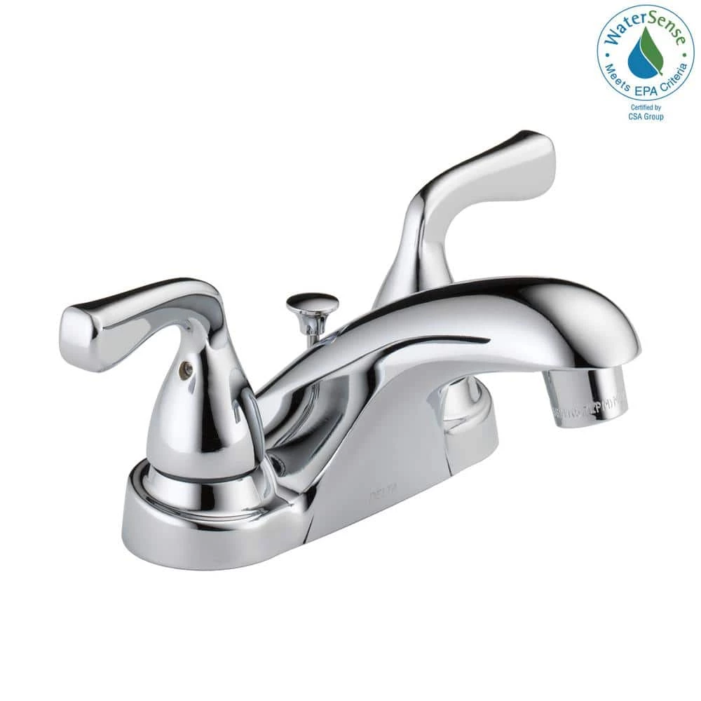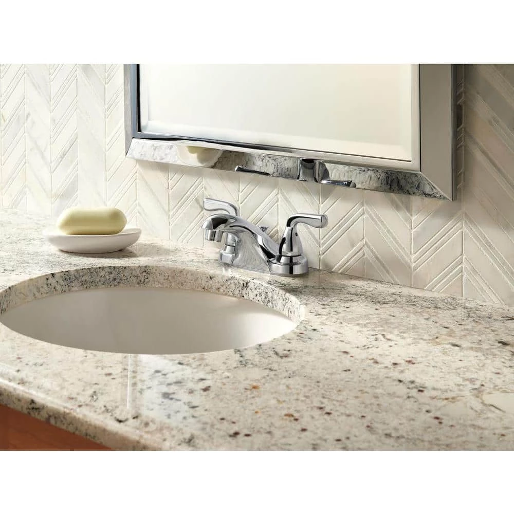 For an updated look or for new installation, consider the Foundations 4 in. 2-Handle Bathroom Faucet in Chrome. The faucet features a deck-plate mounting design and is installed in 3 holes with 4 in. on-center spacing. The 2-handle lever design makes the faucet easy to operate while the low-arc spout leaves plenty of room for washing hands. This environmentally-friendly faucet is WaterSense-certified to reduce water waste.