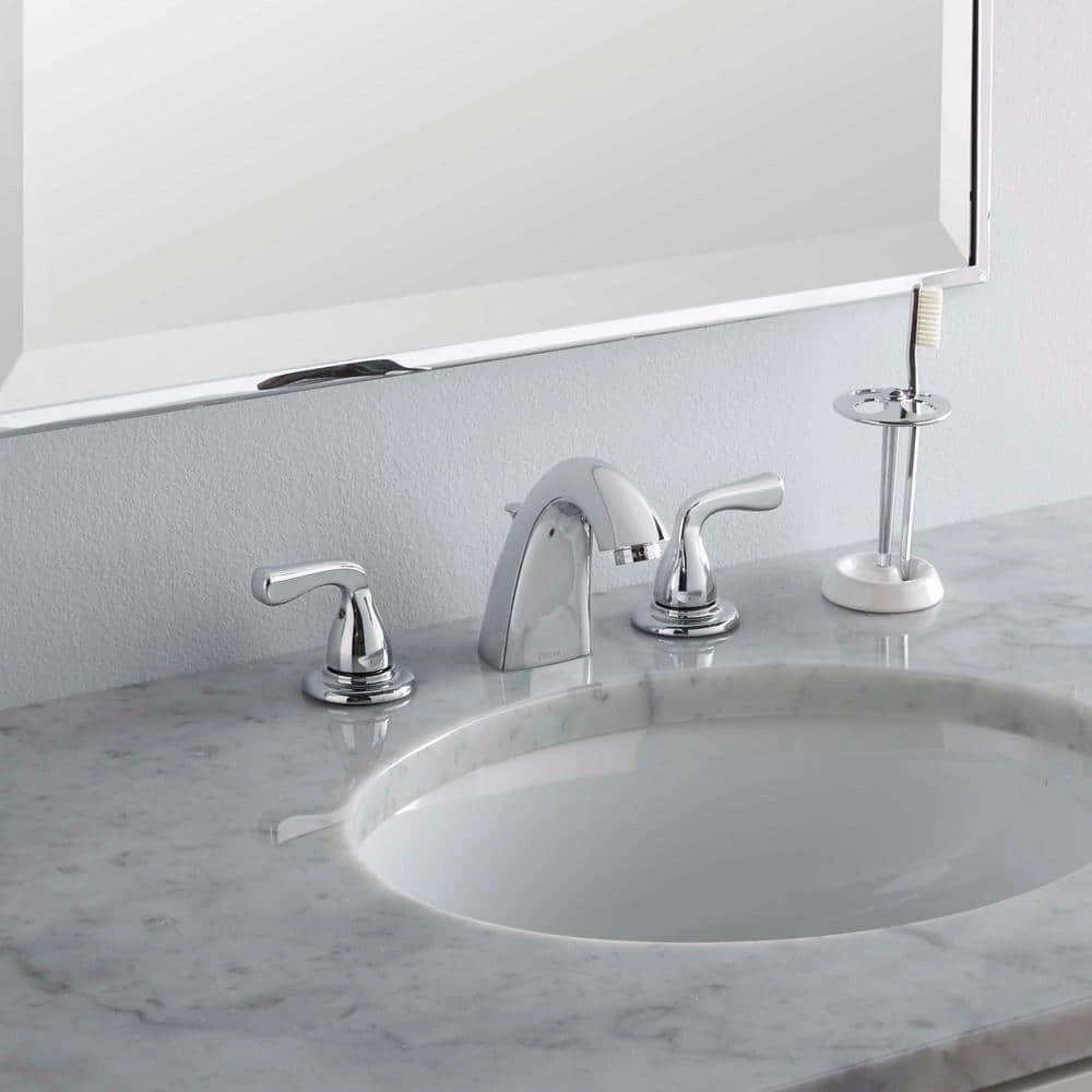 For an updated look or for new installation, the Foundations 8 in. Widespread 2-Handle Bathroom Faucet in Chrome offers sleek style in a brilliant chrome finish. The faucet features a deck-plate mounting design and is easily installed in standard 3-hole sinks. A 2-handle lever design makes it easy to operate, while the low-arc spout leaves plenty of room for washing hands. This environmentally friendly design is also WaterSense certified to reduce water waste, making it an efficient and responsible choice for your home.