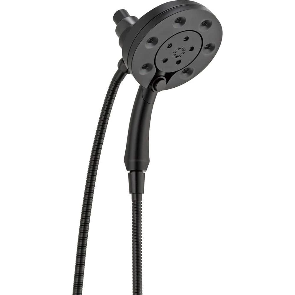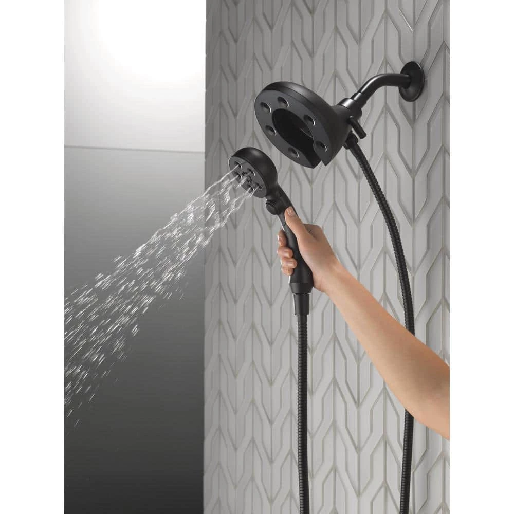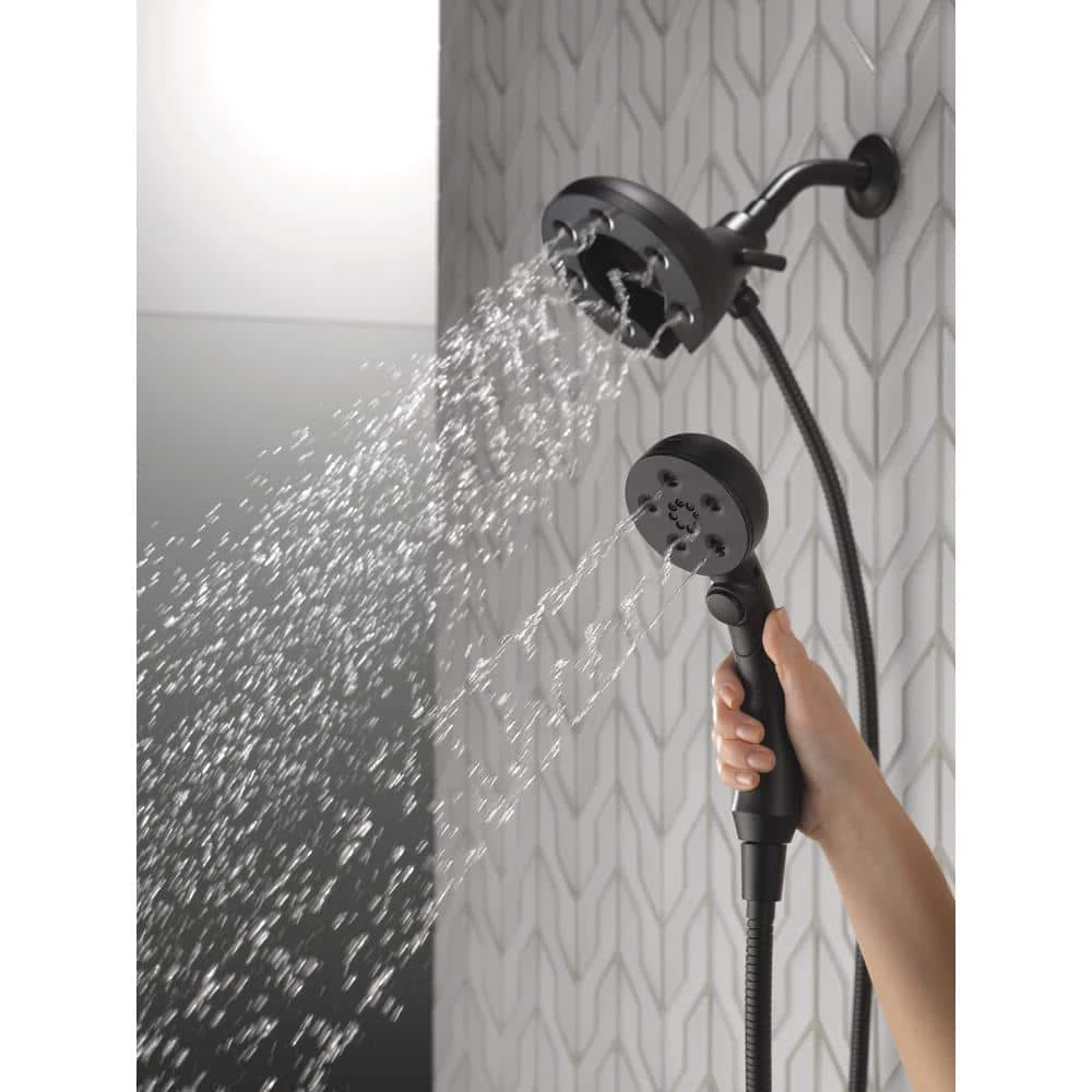 The Delta In2ition Two-in-One Shower features a detachable hand shower which can be used separately from or simultaneously with the shower head. This integrated dual-functionality gives you maximum flexibility without sacrificing warmth, as you can choose to have water streaming from the shower head only, the hand shower only or both the shower head and hand shower at once. Using advanced technology, H2Okinetic showers sculpt water into a unique wave pattern, giving you 3X the coverage of a standard shower head. The end result is a shower that provides more coverage, more warmth and more intensity for a truly drenching shower experience. So go ahead and indulge, because now you can enjoy the feeling of more water without using more water. Delta MagnaTite Docking uses a powerful integrated magnet to pull your faucet spray wand or In2ition hand shower precisely into place and hold it there so it stays docked when not in use. The pause setting gives you ample space for shaving, lathering and other shower tasks, then easily restarts the water with the temperature where you left off. This spray setting helps you conserve water, so you can worry less about depleting your supply of hot water – and you help the environment too. Coverage measured in accordance with EPA WaterSense Specification for shower heads, March 4, 2010.