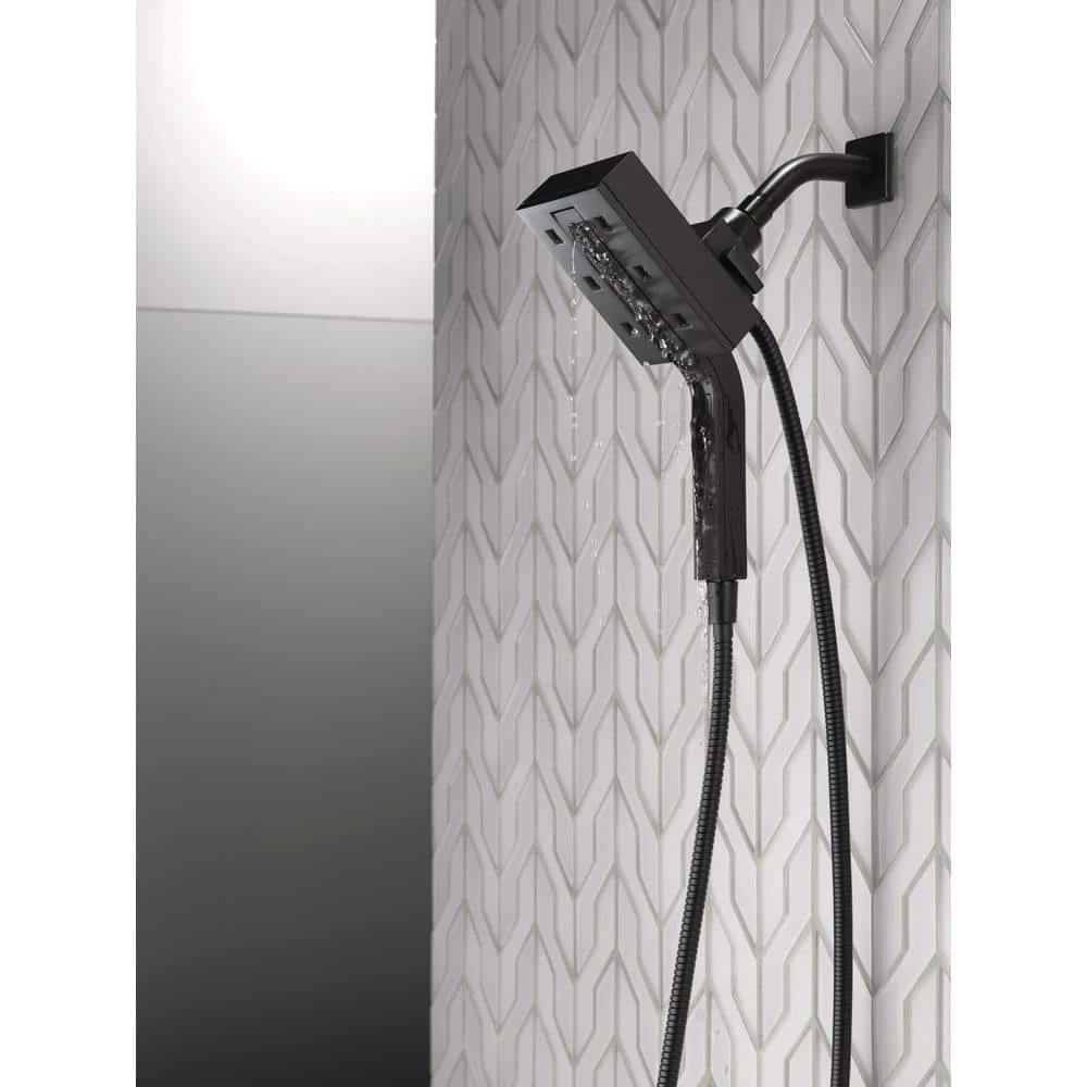 The Delta In2ition Two-in-One Shower features a detachable hand shower which can be used separately from or simultaneously with the shower head. This integrated dual-functionality gives you maximum flexibility without sacrificing warmth, as you can choose to have water streaming from the shower head only, the hand shower only or both the shower head and hand shower at once. H2Okinetic showers sculpt water into a unique wave pattern, giving you more coverage than a standard shower head. The end result is a shower that provides more coverage, more warmth and more intensity for a truly drenching shower experience. Delta MagnaTite Docking uses a powerful integrated magnet to pull your faucet spray wand or In2ition hand shower precisely into place and hold it there so it stays docked when not in use. While other products may gather unsightly mineral build-up over time, Delta soft rubber Touch-Clean spray holes allow any mineral residue to simply be wiped away for an instantly refreshed look – with no need for soaking or the aid of chemical cleaners. The pause setting gives you ample space for shaving, lathering and other shower tasks, then easily restarts the water with the temperature where you left off. This spray setting helps you conserve water, so you can worry less about depleting your supply of hot water and you help the environment too. Delta WaterSense labeled showers use at least 20% less water than the industry standard-saving you money without compromising performance.
