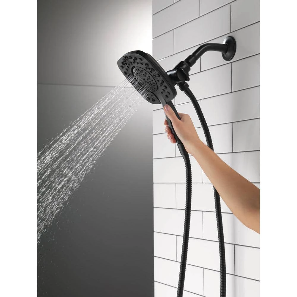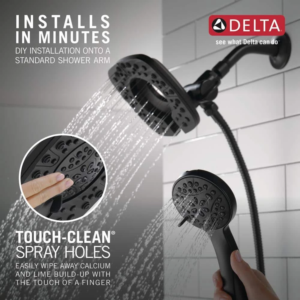 The Delta In2ition two-in-one shower features a detachable hand shower which can be used separately from or simultaneously with the shower head. This integrated dual-functionality gives you maximum flexibility without sacrificing warmth, as you can choose to have water streaming from the shower head only, the hand shower only or both the shower head and hand shower at once. While other products may gather unsightly mineral build-up over time, Delta soft rubber Touch-Clean spray holes allow any mineral residue to simply be wiped away for an instantly refreshed look with no need for soaking or the aid of chemical cleaners. The pause setting gives you ample space for shaving, lathering and other shower tasks, without worrying about overspray or water waste. This spray setting helps you conserve water, so you can worry less about depleting your supply of hot water and you help the environment too. Delta WaterSense labeled faucets, showers and toilets use at least 20% less water than the industry standard saving you money without compromising performance.