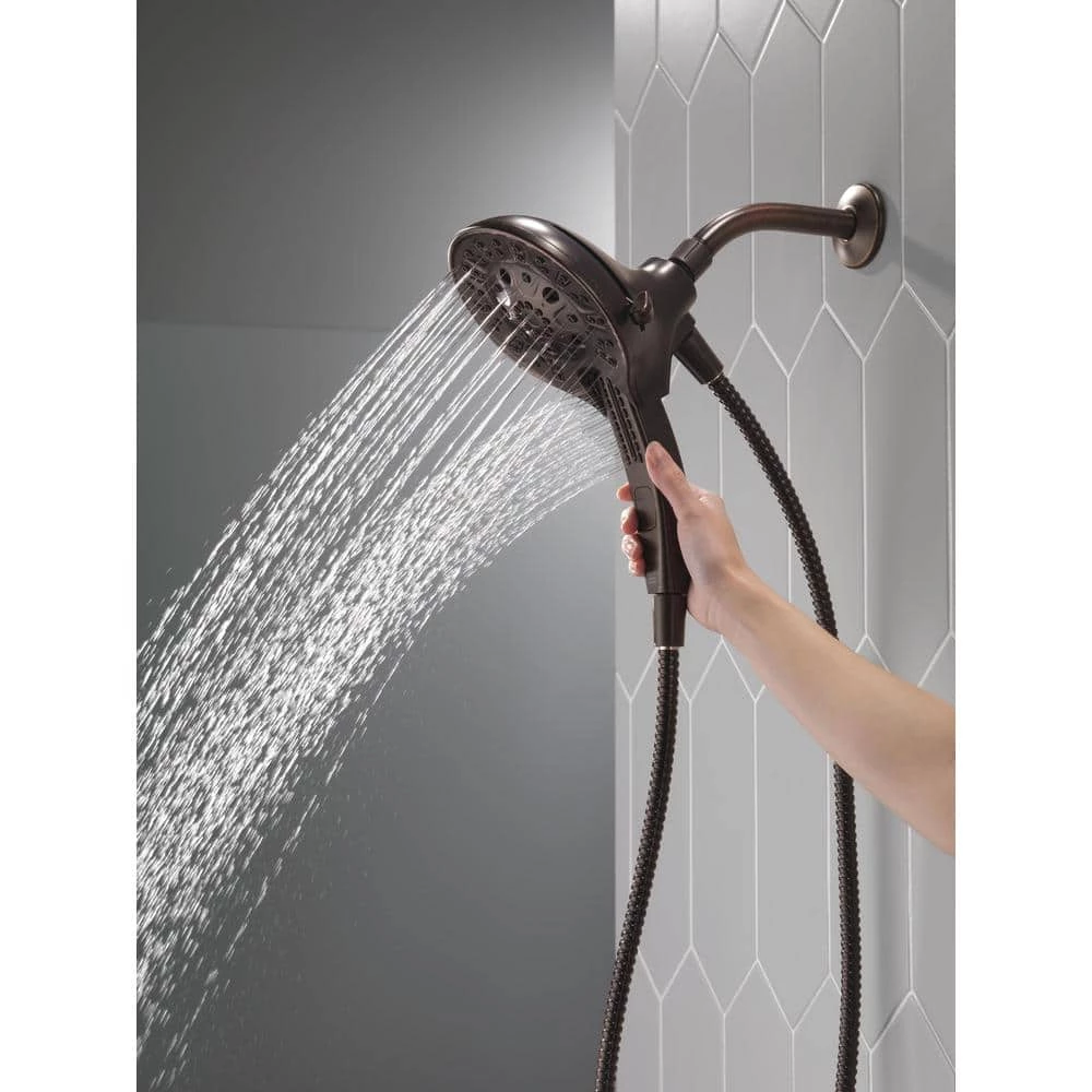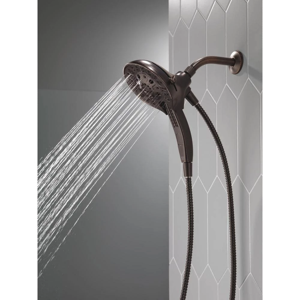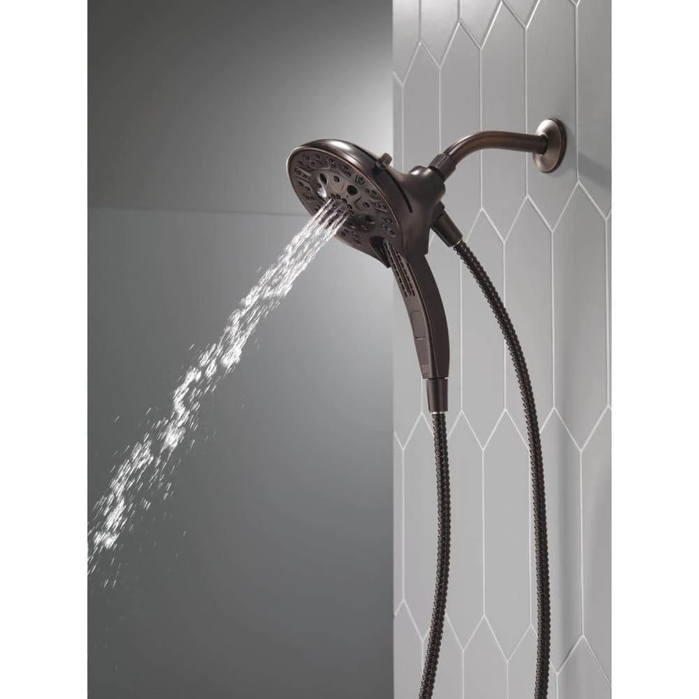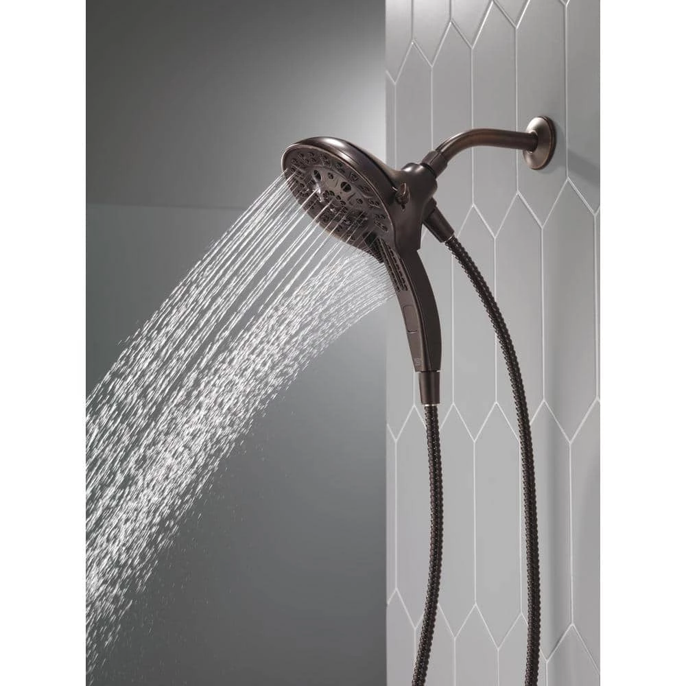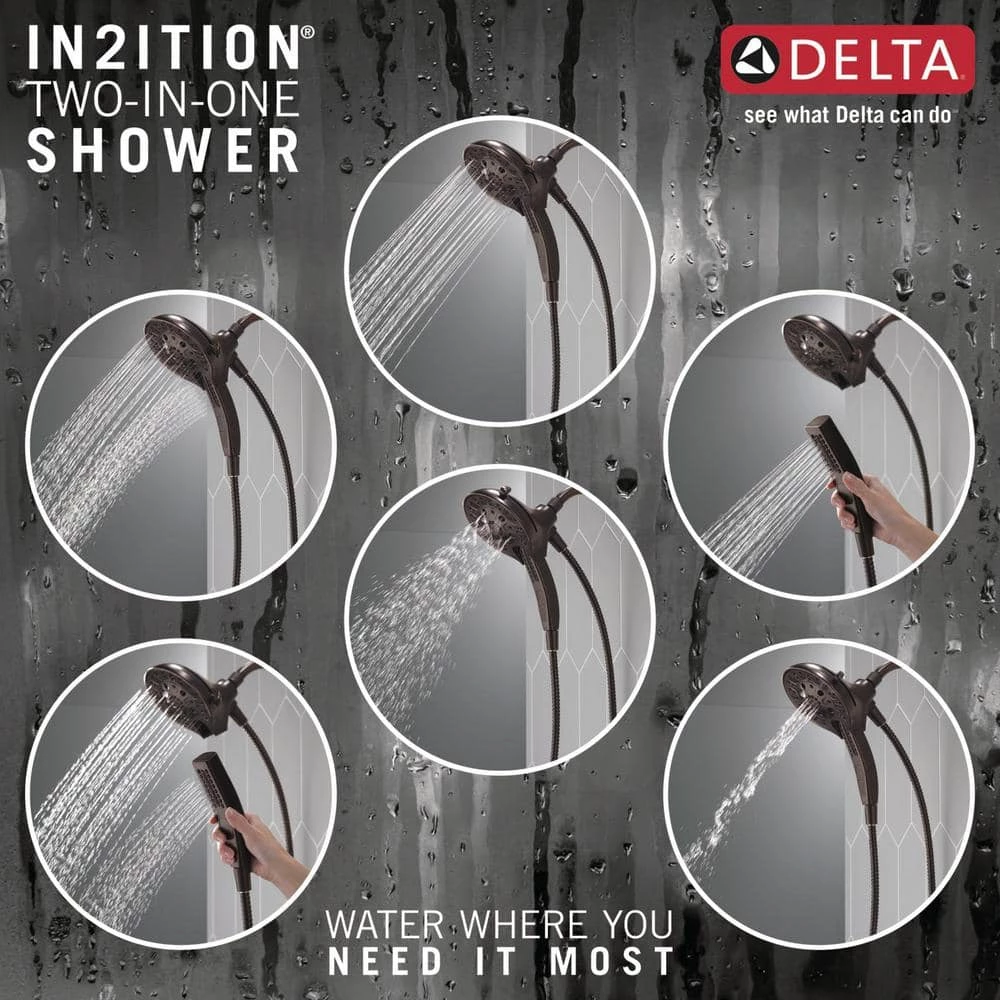 The Delta In2ition Two-in-One Shower features a detachable hand shower which can be used separately from or simultaneously with the shower head. This integrated dual-functionality gives you maximum flexibility without sacrificing warmth, as you can choose to have water streaming from the shower head only, the hand shower only or both the shower head and hand shower at once. Delta H2Okinetic PowerDrench Showers look different because they are different. H2Okinetic showers are powered by an innovative technology that sculpts the water into a unique wave pattern, giving you the feeling of more water without using more water and creating a shower with more warmth, coverage, and intensity. Delta MagnaTite Docking uses a powerful integrated magnet to pull your In2ition hand shower precisely into place and hold it there so it stays docked when not in use. Delta soft rubber Touch-Clean spray holes allow any mineral residue to simply be wiped away for an instantly refreshed look with no need for soaking or the aid of chemical cleaners. The pause setting gives you ample space for shaving, lathering and other shower tasks, without worrying about overspray or water waste. This spray setting helps you conserve water, so you can worry less about depleting your supply of hot water – and you help the environment too. Delta WaterSense labeled faucets, showers and toilets use at least 20% less water than the industry standard, saving you money without compromising performance.