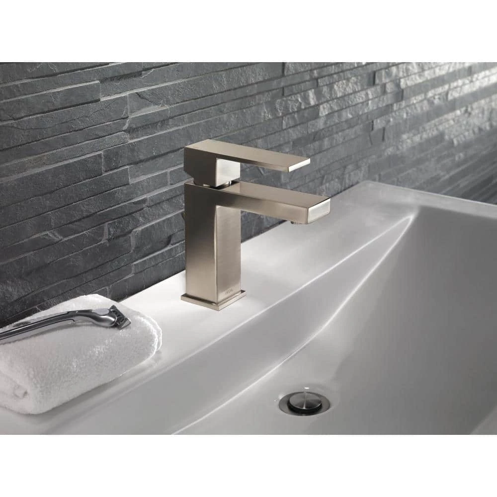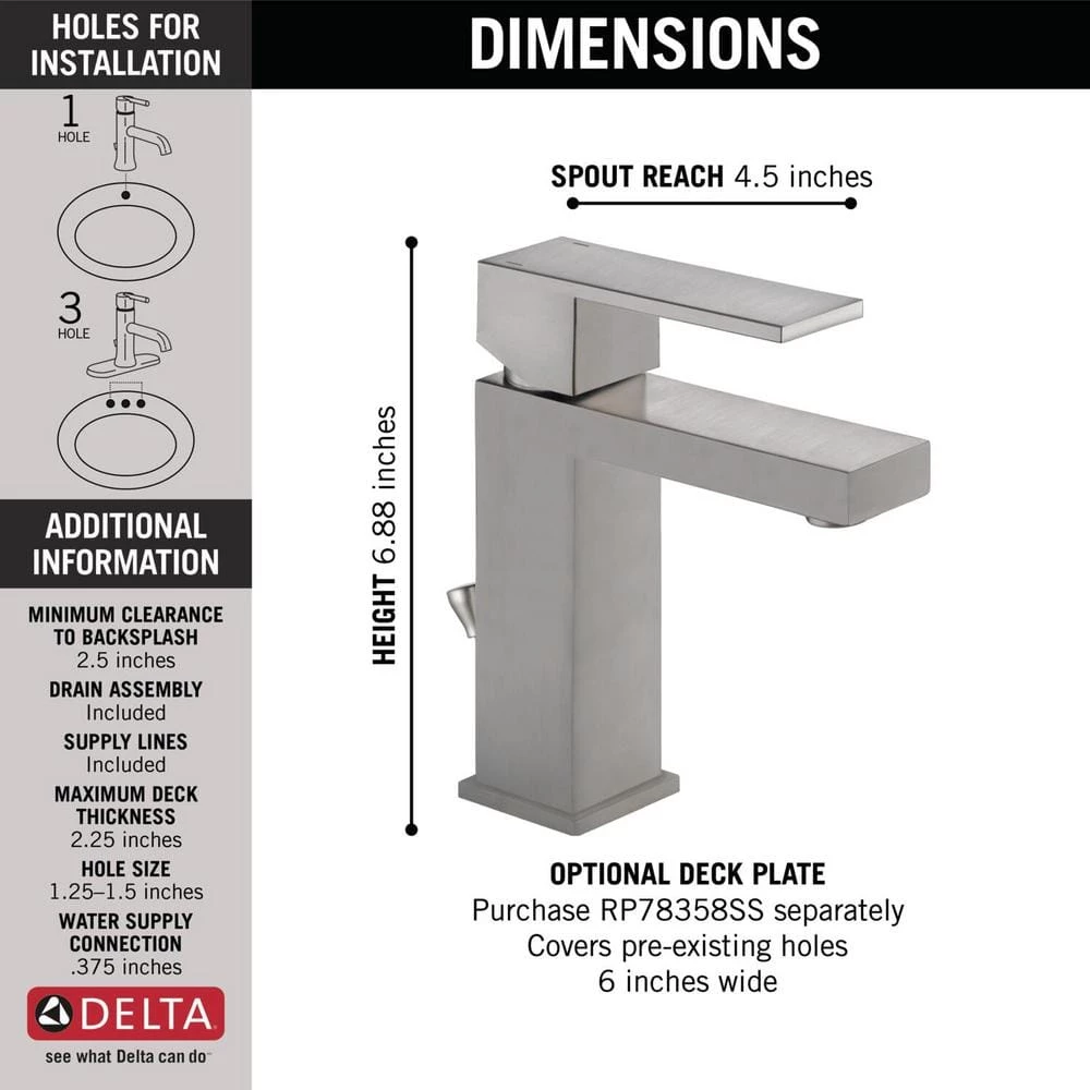 With defined geometric angles and edges, this Modern Single Hole 1-Handle Bathroom Faucet in Stainless creates a streamlined look of contemporary elegance. Models have 50/50 pop-up type fitting with plated flange and stopper. Delta is committed to supporting water conservation around the globe and has been recognized as WaterSense Manufacturer Partner of the Year in 2011 and 2013. You can buy with confidence, knowing that Delta backs its products with a limited lifetime warranty.