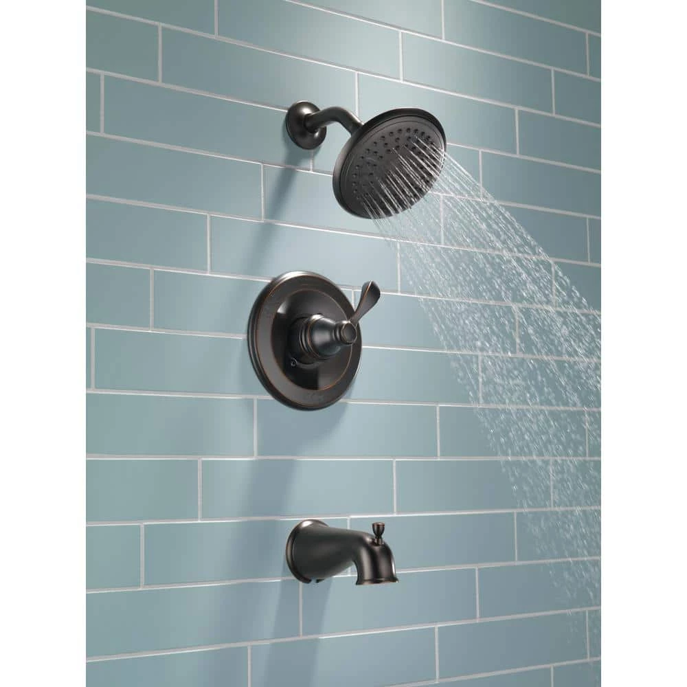 The graceful arc and simple detailing of the Porter Single-Handle 3-Spray Tub and Shower Faucet from Delta offer a traditional yet timeless elegance. The single-handle design makes temperature adjustment easy, while the Monitor Scald-Guard valve helps maintain a constant temperature so you and your family can enjoy safe and comfortable showers every day. This environmentally friendly design is also WaterSense certified to reduce water waste, making it an efficient and responsible choice for your home.