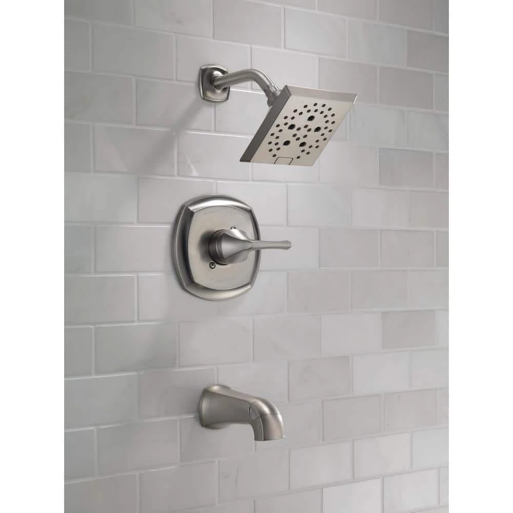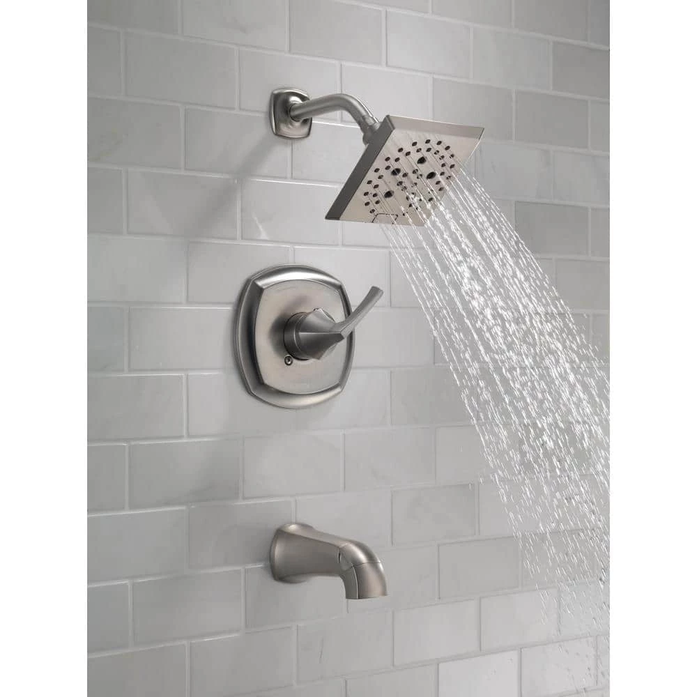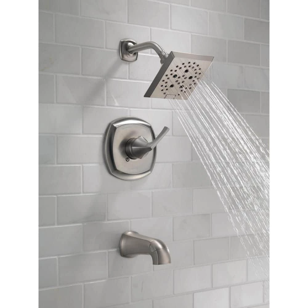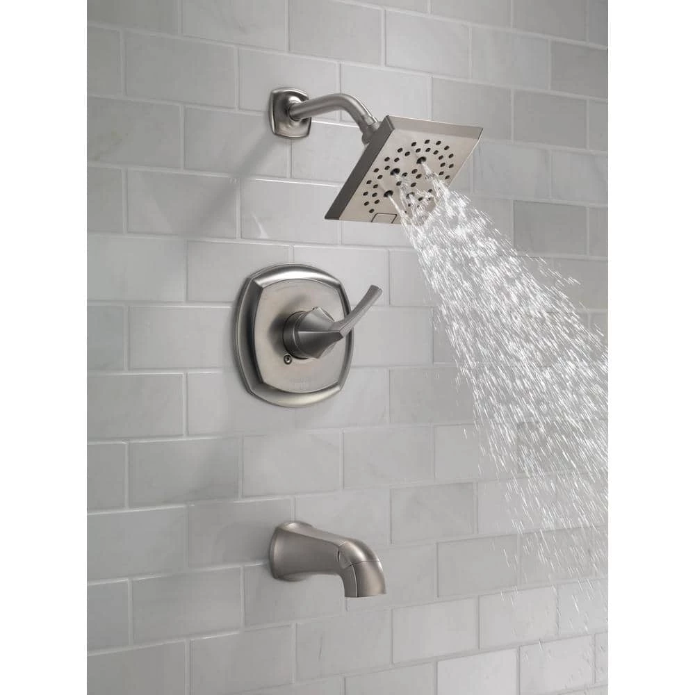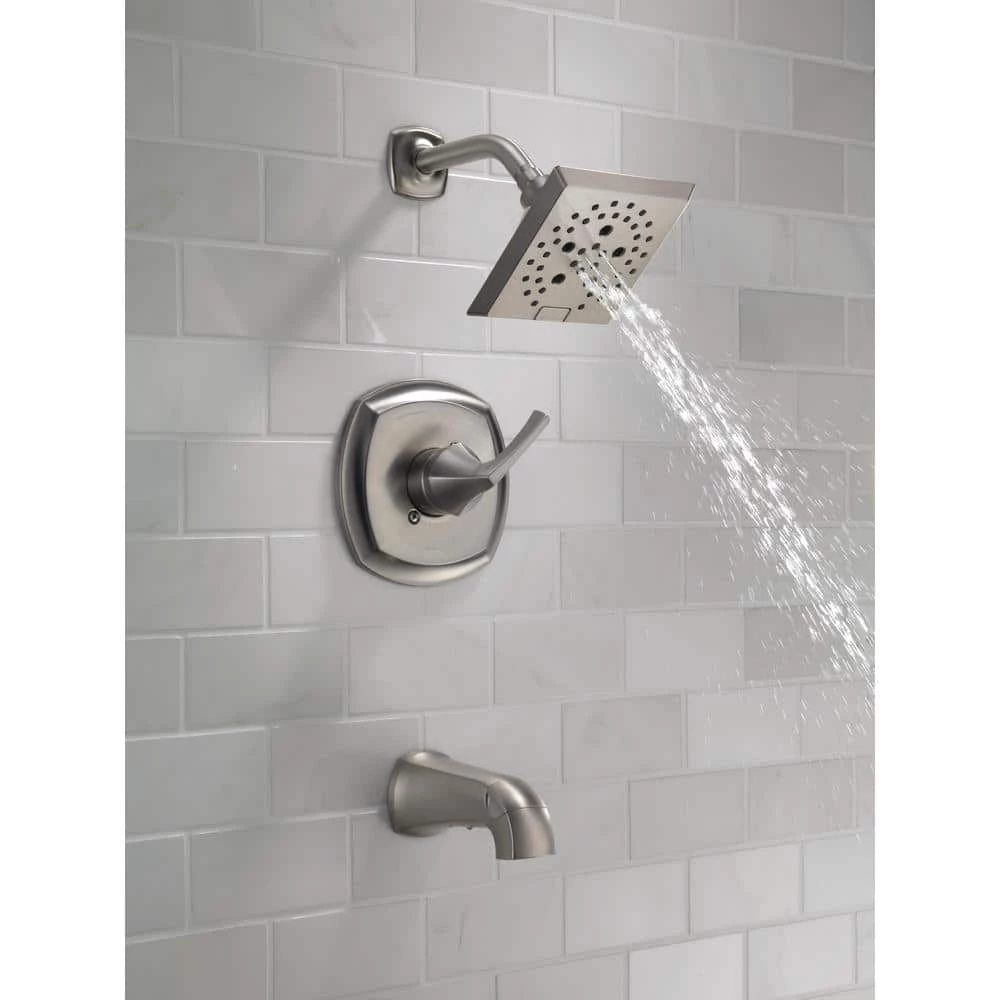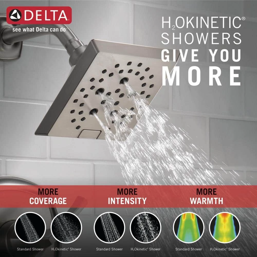 Delta SpotShield Technology helps to keep your faucet or shower cleaner, longer by resisting water spots and fingerprints. Keep your space spotless with SpotShield Technology, available across a variety of finishes for the kitchen and bath. While other products may gather unsightly mineral build-up over time, Delta soft rubber Touch-Clean spray holes allow any mineral residue to simply be wiped away for an instantly refreshed look with no need for soaking or the aid of chemical cleaners. The pause setting gives you ample space for shaving, lathering and other shower tasks, then easily restarts the water with the temperature where you left off. This spray setting helps you conserve water, so you can worry less about depleting your supply of hot water – and you help the environment too. Delta pressure-balance valves use Monitor Technology to protect you and your family from sudden temperature changes. The muted shine and subtle warmth of Brushed Nickel brings harmony to your bath and can be paired with almost any decor. Delta WaterSense labeled faucets, showers and toilets use at least 20% less water than the industry standard saving you money without compromising performance.
