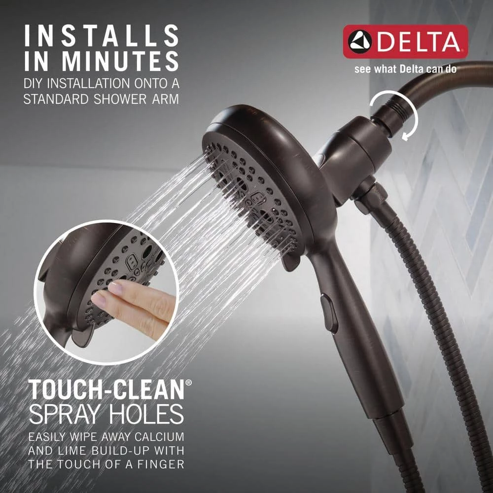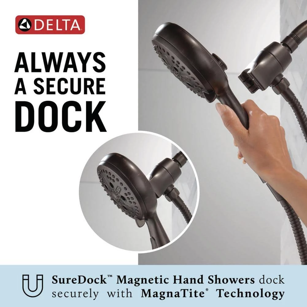 Experience a better shower with the control and flexibility of a Delta hand shower. SureDock Magnetic Hand Showers bring reliable docking within reach. An integrated magnet on the back of the hand shower snaps your hand shower into place and holds it there, so it stays docked when not in use and doesn’t droop over time. Our H2O kinetic showers are powered by an innovative technology that sculpts the water into a unique wave pattern, giving you the feeling of more water and water pressure. Delta WaterSense labeled showers use at least 20% less water than the industry standard – helping you save water without compromising performance. You can install with confidence, knowing that Delta showers are backed by our Lifetime Limited Warranty.