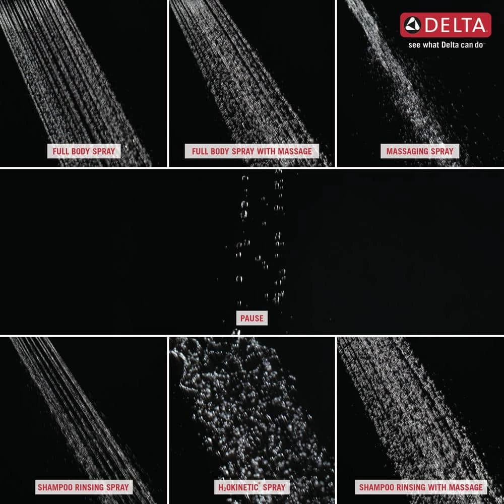 - Spray settings include: H2O kinetic PowerDrench spray, full body spray, full spray with massage, massaging spray, shampoo rinsing spray, shampoo rinsing spray with massage and pause