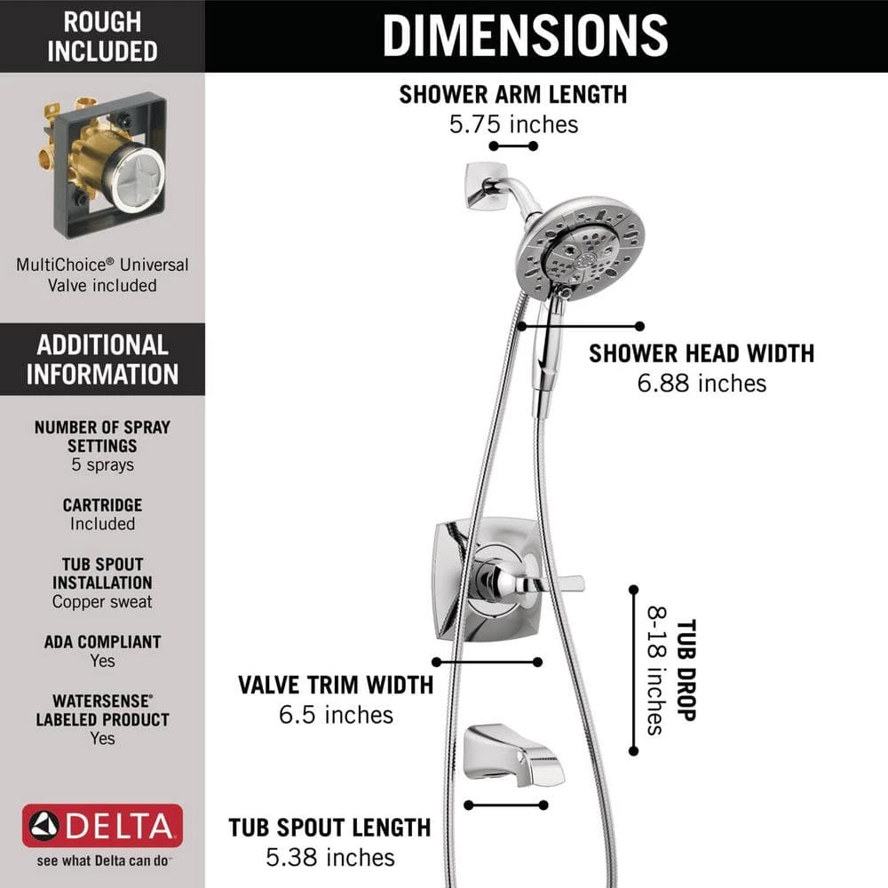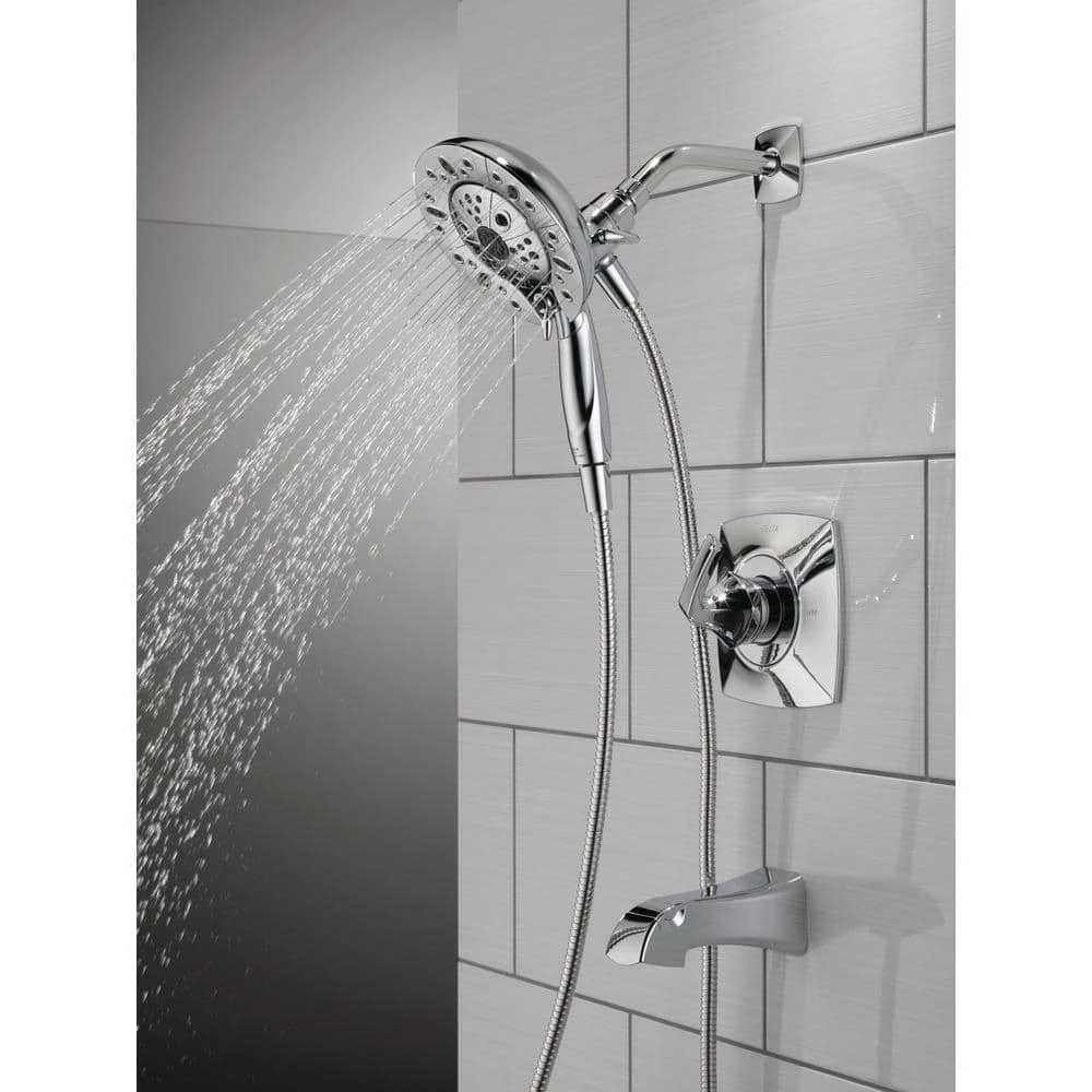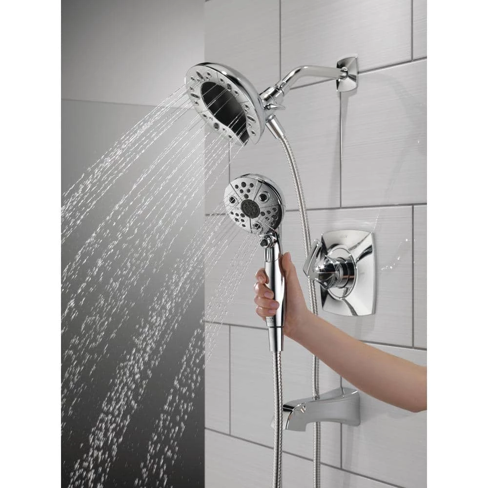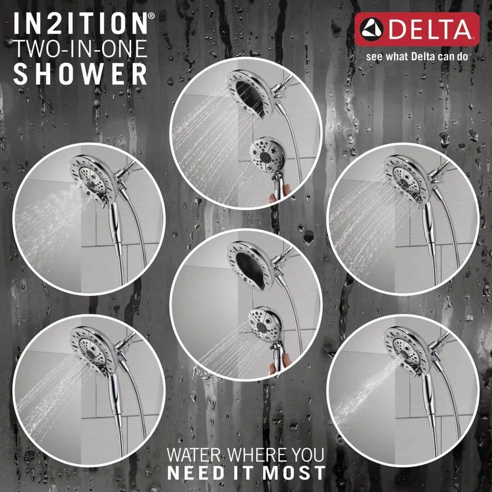 The Delta In2ition 2-in-1 Shower features a detachable hand shower which can be used separately from or simultaneously with the shower head. This integrated dual-functionality gives you maximum flexibility without sacrificing warmth, as you can choose to have water streaming from the shower head only, the hand shower only or both the shower head and hand shower at once. Delta H2Okinetic Showers look different because they are different. Using advanced technology, H2Okinetic showers sculpt water into a unique wave pattern, giving you 3X the coverage of a standard shower head. The end result is a shower that provides more coverage, more warmth and more intensity for a truly drenching shower experience. The pause setting gives you ample space for shaving, lathering and other shower tasks, then easily restarts the water with the temperature where you left off. This spray setting helps you conserve water, so you can worry less about depleting your supply of hot water – and you help the environment too. Delta WaterSense labeled faucets, showers and toilets use at least 20% less water than the industry standard saving you money without compromising performance.