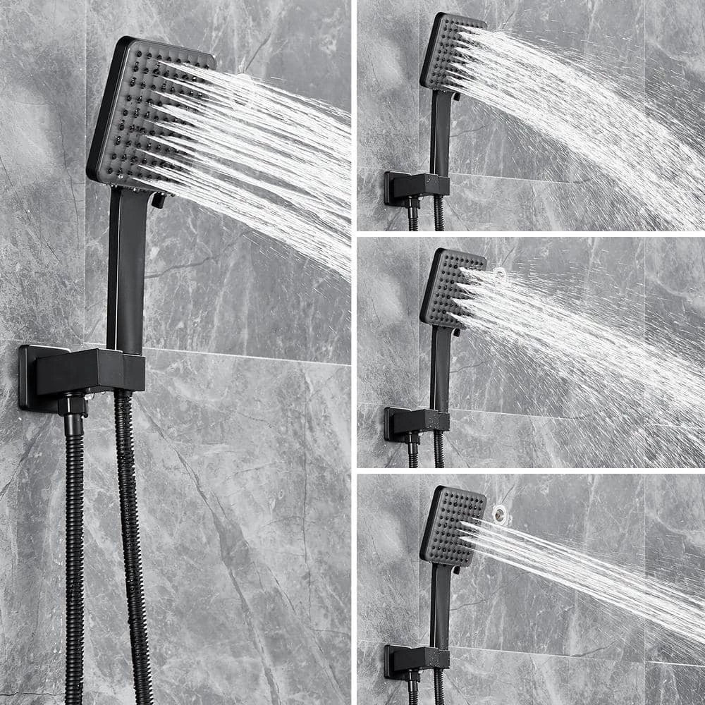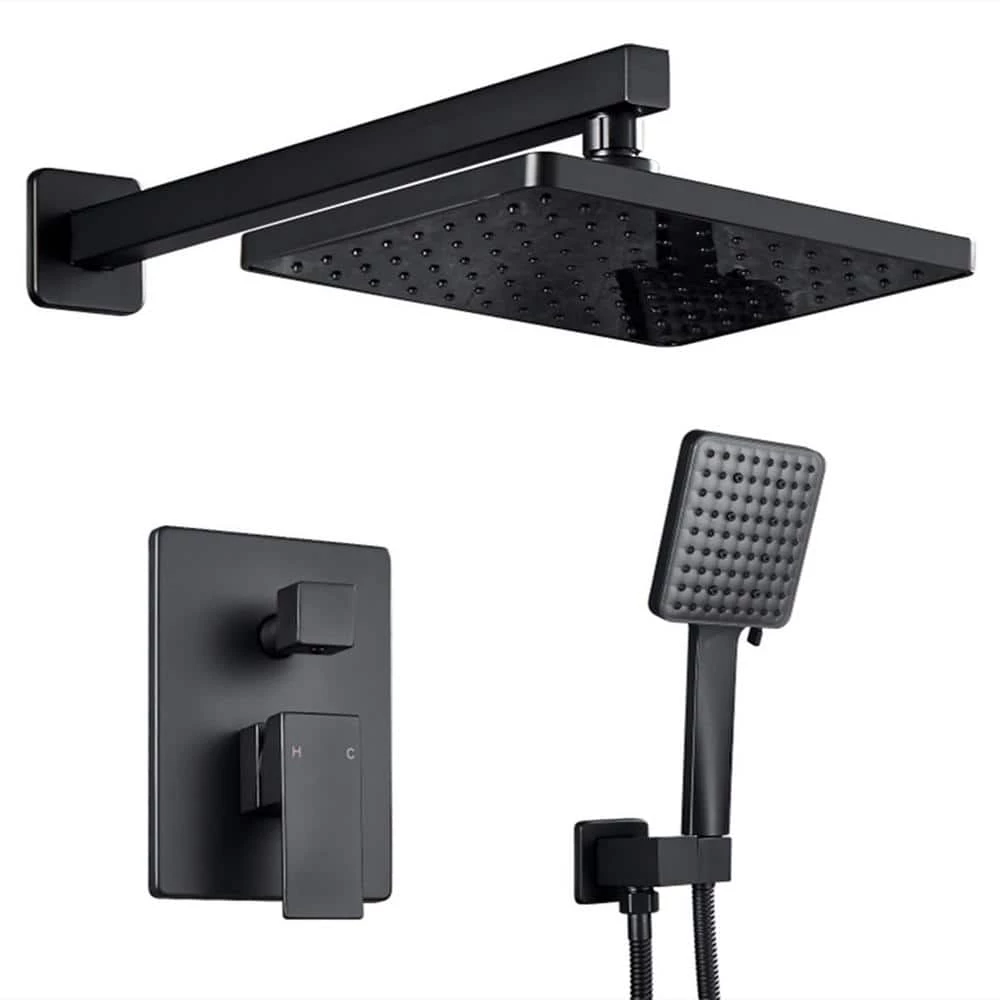 Complete Shower Faucet with Valve and Shower Head Systems Wall Mounted Shower Combo Set for Bathroom. Shower faucet set package includes rain-style shower head, 15.7 in. shower arm Shower trim kit includes integrated diverter mixing rough-in valves brass handheld shower and shower holder. This complete shower system takes pure and simple geometric forms and composes them into an expression of modern luxury. Elegant design easily blends with the decor of your bathroom.