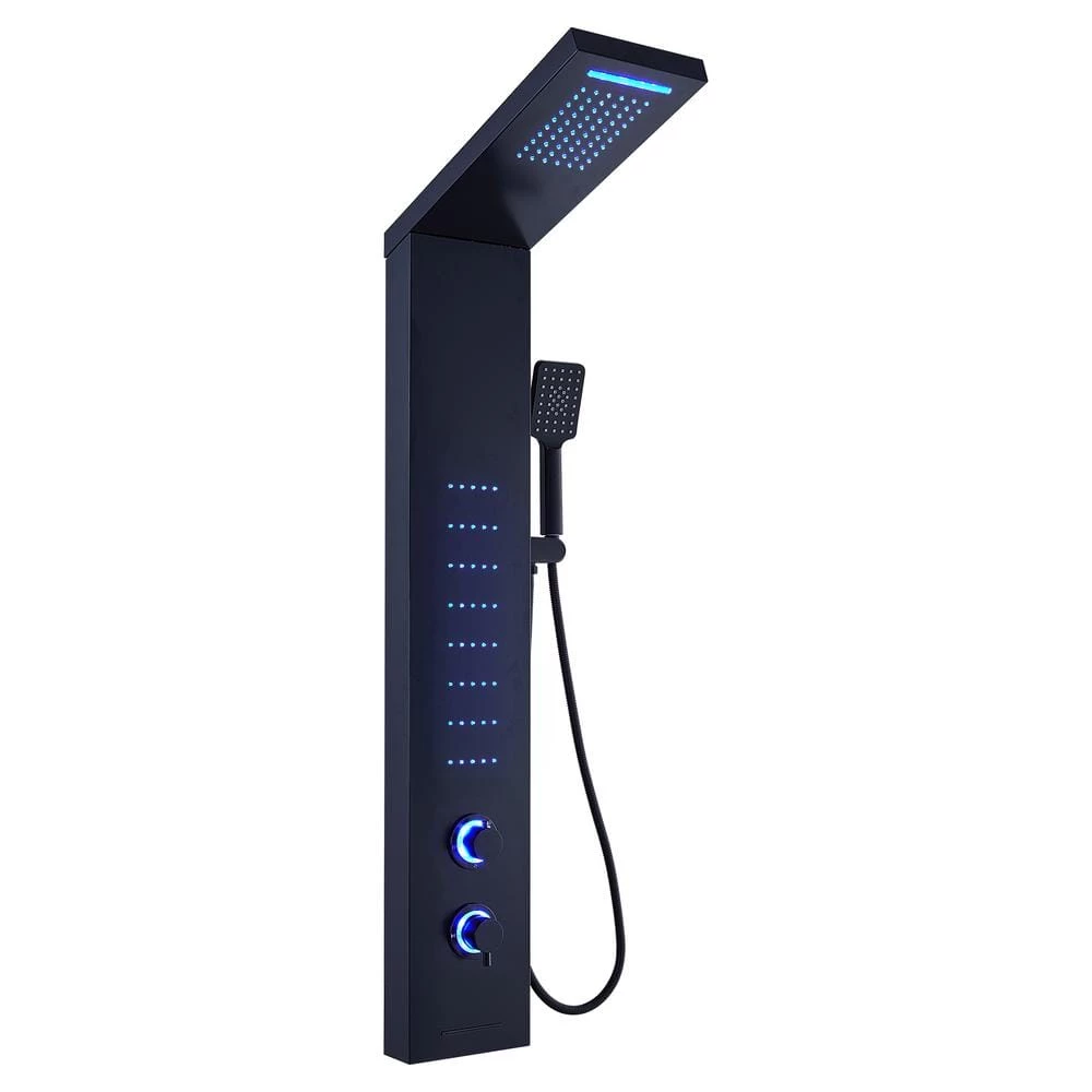- Luxury shower panel has built-in LED overhead rainfall showerhead, tub spout, 3 modes handheld shower and LED body jets spray pattern plumbing components are included, super easy install