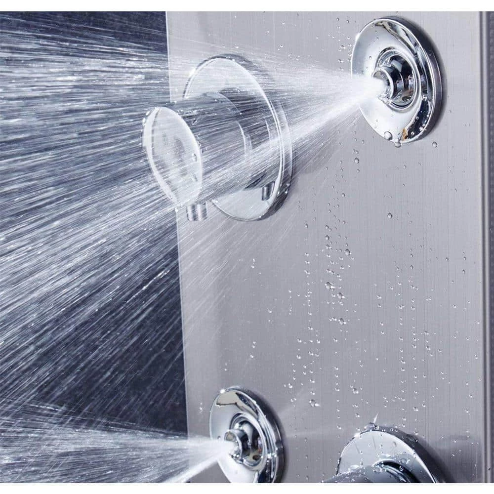 - SUS 304 stainless steel construction: the panel is made of strong and highly durable 304 stainless steel, features corrosion resistant, low maintenance and better longevity. Chrome hand shower and tub spout.