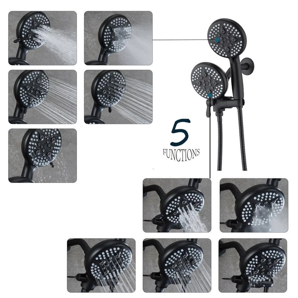 - Use luxurious 5-setting overhead shower head and 5-setting hand shower separately or both together, choose from 24 full and combined water flow patterns