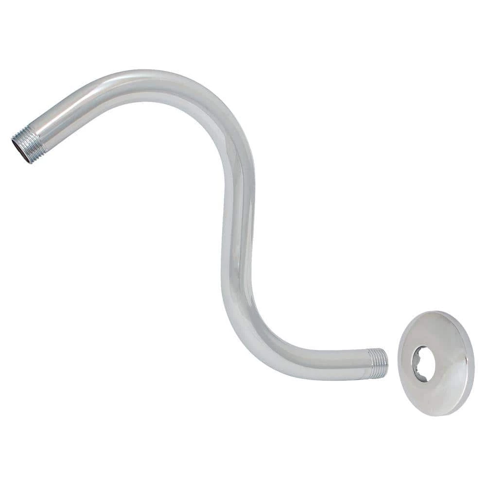 The EZ-FLO S-style shower arm, also called gooseneck shower arm, is designed to maximize the height of your showerhead, raising it 11 in. above its standard position. This S-shower arm includes a flange to finish your installation with a clean and professional appearance. This product has an anti-corrosive chrome finish to match with the rest of your bathroom hardware. Designed for a long lifespan.