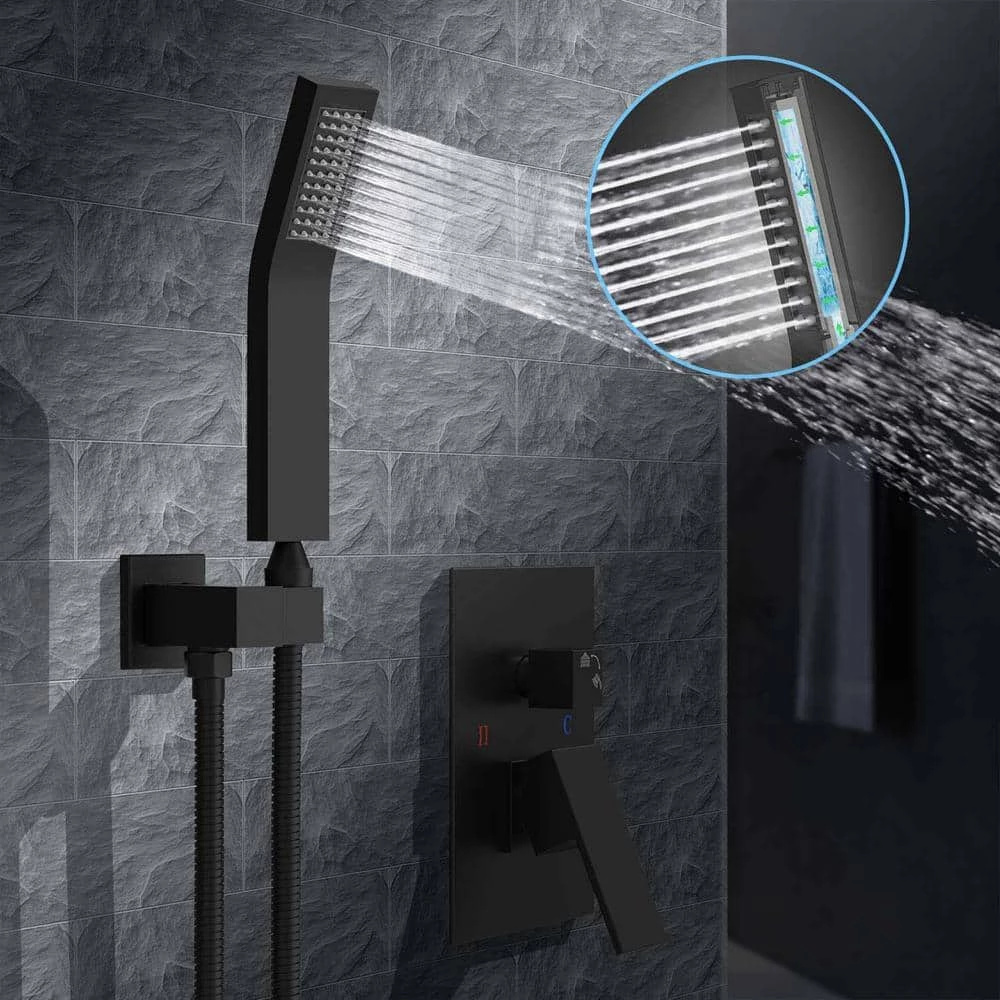 - Special design of solid brass shower mixer valve: shower knob on the valve switches the bathing modes, single handle for easy control of water flow and temperature