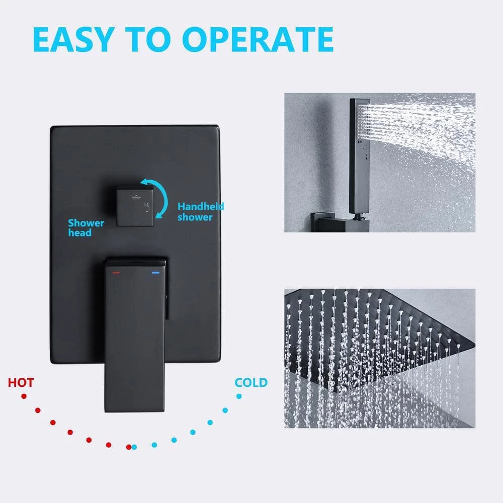 - 2 GPM hand-held shower head, 2.5 GPM large stainless steel square rainfall shower head good performance even in low water pressure installations