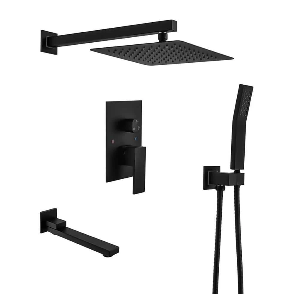 - Included components: shower arm, rain shower head, handheld shower head, shower valve faucet, shower bracket holder, shower hose